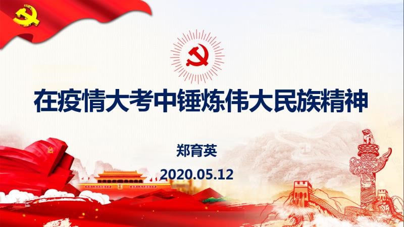 首先,郑育英同志为全体教师做了《在疫情大考中锤炼伟大民族精神》的主题报告,鼓励全体教师在疫情期间坚定党的领导,锤炼“创新创造、奋进战斗、团结合作及追逐梦想”的伟大民族精神。指出,这次疫情防控期间停课不停教、停课不停学,网络教学的形式授课,对老师的教学理念、教学方法和教学实践都是一种新的挑战,鼓励各位党员同志、各位老师在实际教学工作中“立足本职,勇于担当”,并希望年轻老师积极加入党组织。