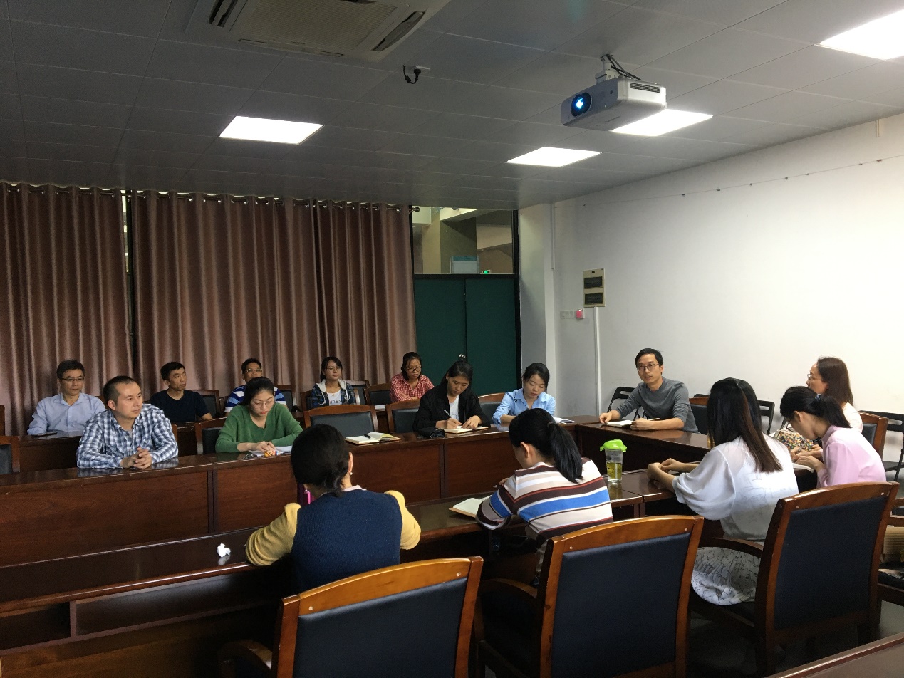第二次主题教育扩大到实验中心全体老师,首先由郝志峰副院长给大家作了“立足本职工作,爱岗敬业”的微党课。郝副院长先给大家分享了两位爱岗敬业模范人物的事迹:布衣院士卢永根的爱国热情和钻研精神,广工老教授黎鑫的教育热情和奉献精神。接着,郝副院长从四个方面给大家阐述了如何“在平凡的岗位上,做好本职工作”,第一要热爱本职岗位,用“平凡”的心态对待“平凡”的岗位,在“平凡”的岗位做出“不平凡”的工作;第二勇于承担责任,每个人要承担属于自己的责任,要勇于担当;第三加强业务学习,要求我们每个人坚持学习,能更好的为live007比分 的本科教学和科学研究贡献自己的力量;第四保持协作与沟通,只有内部协调沟通好,才能身心愉悦地工作和为live007比分 服务。最后,郝副院长希望全体党员多发挥模范带头作用,多干一点,少拿一点,主动一点,勤勉一点;希望实验中心全体成员共同努力,为live007比分 的学科建设和发展尽自己最大的努力。