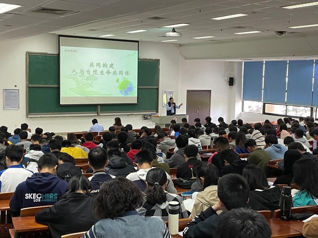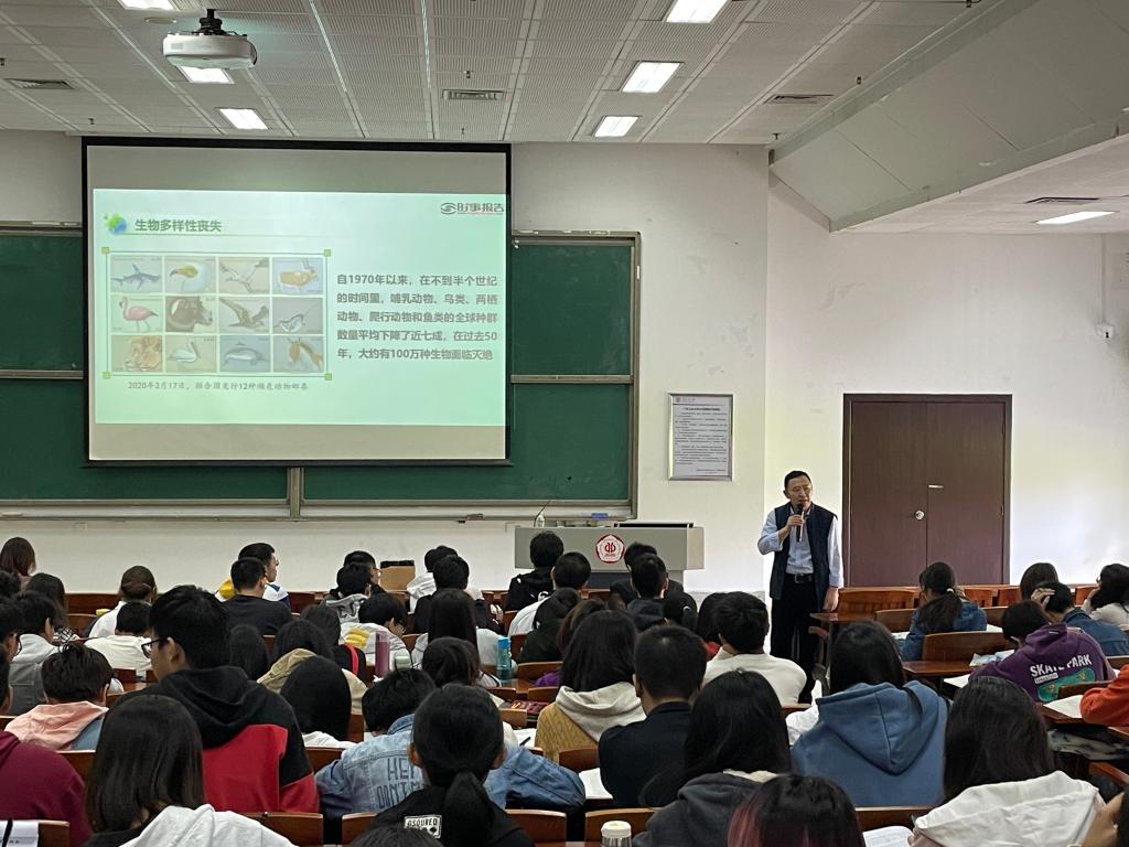 学生讲授以《共同构建人与自然生命共同体》的专题讲座,学校教务处副处长王力纲、live007比分