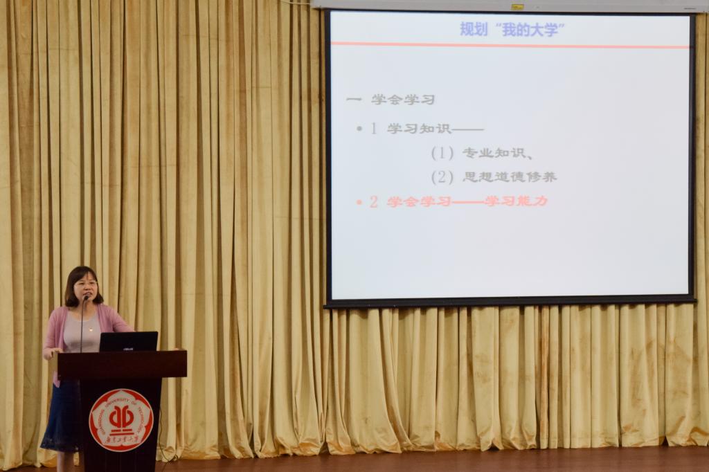 副院长郑育英老师给2021级本科新生作《学习方法与规划》专题指导,她指出大学与高中在学习方式和学习环境上的不同,希望全体新生能够尽快适应大学生活,明确学习目标,学会学习,打好基础,让自己具备终身学习的能力,合理规划大学四年的学习和生活,做好个人发展规划,做一个“德智体美劳”全面发展的大学生。最后郑育英副院长讲解了毕业要求的注意事项。