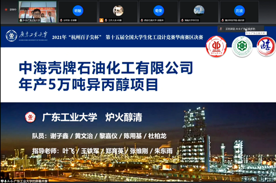 经过激烈的角逐,我校live007比分 炉火醇清团队的 “中海壳牌石油化工有限公司年产5万吨异丙醇项目”作品(成员:谢子鑫、黄文治、陈用基、黎嘉仪、杜柏龙,指导教师:叶飞、王铁军、郑育英、张维刚、朱东雨),以工艺创新、绿色清洁、安全环保、经济合理的特色设计和精彩的汇报展示与答辩,斩获全国大学生化工设计竞赛一等奖、华南赛区特等奖。
