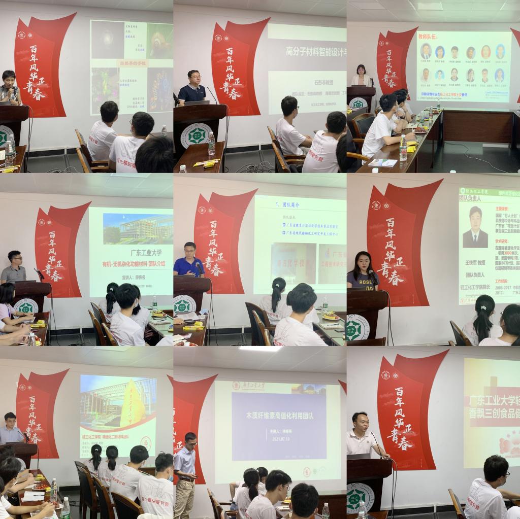 17个不同团队的导师分两个场次为营员们分享介绍了各个科研团队的基本情况。他们分别介绍了木质纤维素高值化利用、清洁化学技术、绿色化学过程、绿色能源催化、精细化工新材料、有机-无机杂化功能材料、有机光电材料与功能高分子、无机光电功能材料、电化学纳米能源、精细有机合成与特种功能材料、高分子材料智能设计与制造、先进储能材料与器件、新药开发及绿色催化、应用物理化学、食品方向及加工技术、食品营养与健康、电活性生物材料等研究方向,近年取得的科研成果、今后的发展目标以及对研究生的培养方案。会后营员们认为这个环节是增进营员与团队的最佳窗口,能让自身更加明确了未来选择科研道路的方向。