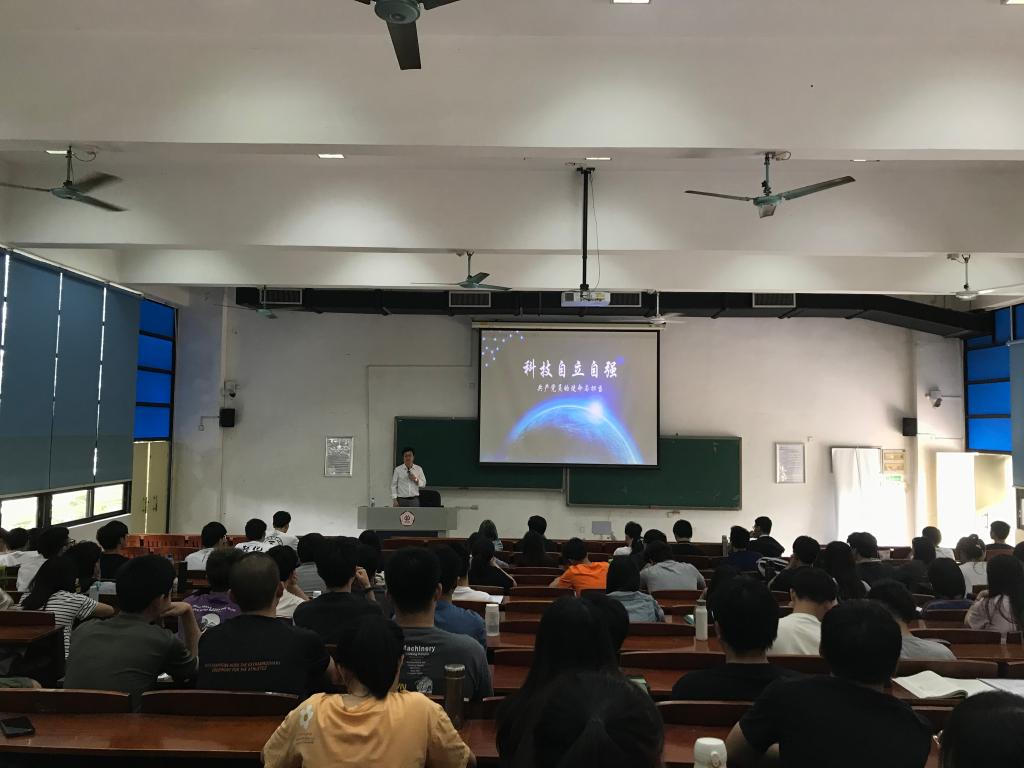 院长王铁军老师主讲。王铁军以《科技自立自强——共产党员的使命与担当》为题,围绕百年征程、赤胆忠诚,格局重构、竞争加速,时代新人、自立自强三个方面进行讲解。王老师从中国共产党百年征程:特殊党费见忠诚讲起,向同学们介绍了特殊时期的特殊党费形式。特殊时期,党费形式不同,但都拿出最珍贵的东西,奉献给党,用生命和鲜血支持了革命事业。一代人有一代人的使命,一代人有一代人的担当。步入新时代,科技自强的需求愈发迫切。国家为青年一代创造了更好的科研条件,青年更应该继承和发扬老一辈的光荣传统,努力学习科学技术知识,扎实掌握科学研究本领,不忘初心,艰苦奋斗。