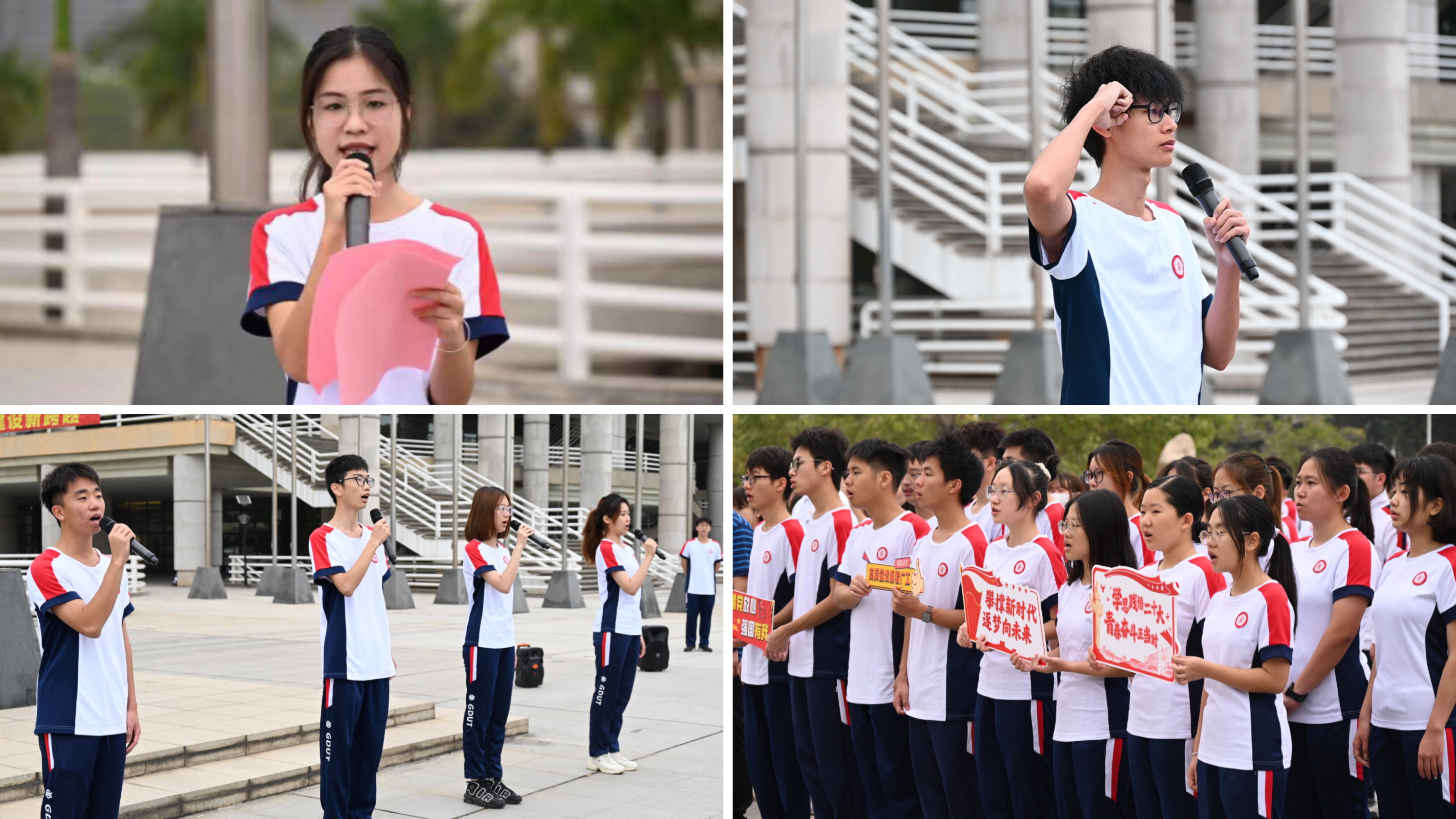 2022级能源化学工程1班蓝钰婷以《砥砺报国之志,担负时代使命》为主题做国旗下发言。她呼吁同学们要坚定理想信念,树立正确价值观,担当时代重任,将青春融入党和人民事业,不负大学四年光阴。随后,2022级应用化学1班关竣尹带领全体同学向国旗庄严宣誓。激昂的誓言回荡在学校上空,响亮的青春之音表达着浓浓的爱党爱国之情、真挚的爱校荣校之情。最后,四名学生代表与同学们共同唱响校歌《逐梦》。轻快的旋律是同学对校园真挚的祝福,柔美的歌声是青年崇高的理想与坚定的信念。