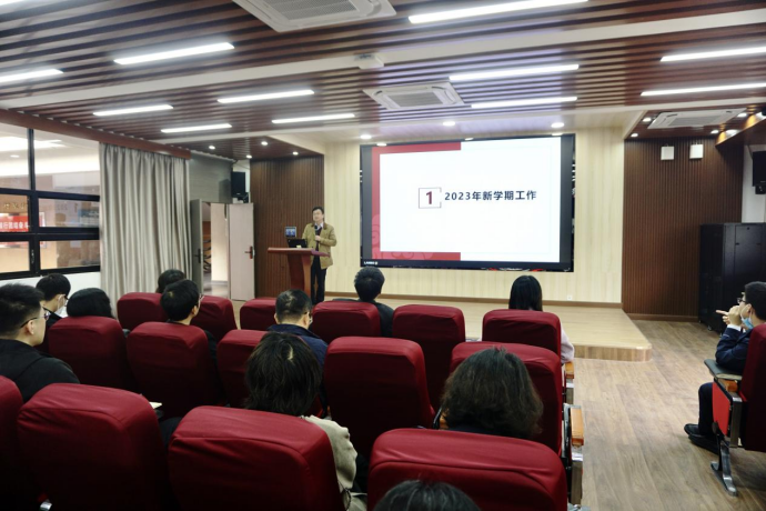 live007比分 党委书记周东斌首先介绍了新入职的教师,简要总结了live007比分 过去一年的工作和取得的成绩,并感谢全体教职工的辛勤付出。随后,他围绕高质量党建引领live007比分 高质量发展主题作本学期live007比分 党委主要工作部署。他指出,2023年我省发展将进入高质量发展的关键期,live007即时比分 全体教职工要坚定不移贯彻落实党的二十大精神,扎实落实全省高质量发展大会精神,以学校高质量发展助推广东省实现现代化建设新的跨越,并提出五点期望:一是要学习贯彻党的二十大精神和广东省高质量发展大会精神及学校工作部署,扎实推进高质量党建引领高质量live007比分 发展;二是加强纪律作风建设,为高质量live007比分 发展提供保障;三是加强政治与意识形态及校园的各项安全工作,为平安校园筑牢安全防线;四是健全完善高质量党建引领live007比分 高质量发展的工作机制,推动学校“1+2+3”攀撑计划学科提升工程;五是加强校友联系,做好庆祝本科办学65周年工作。