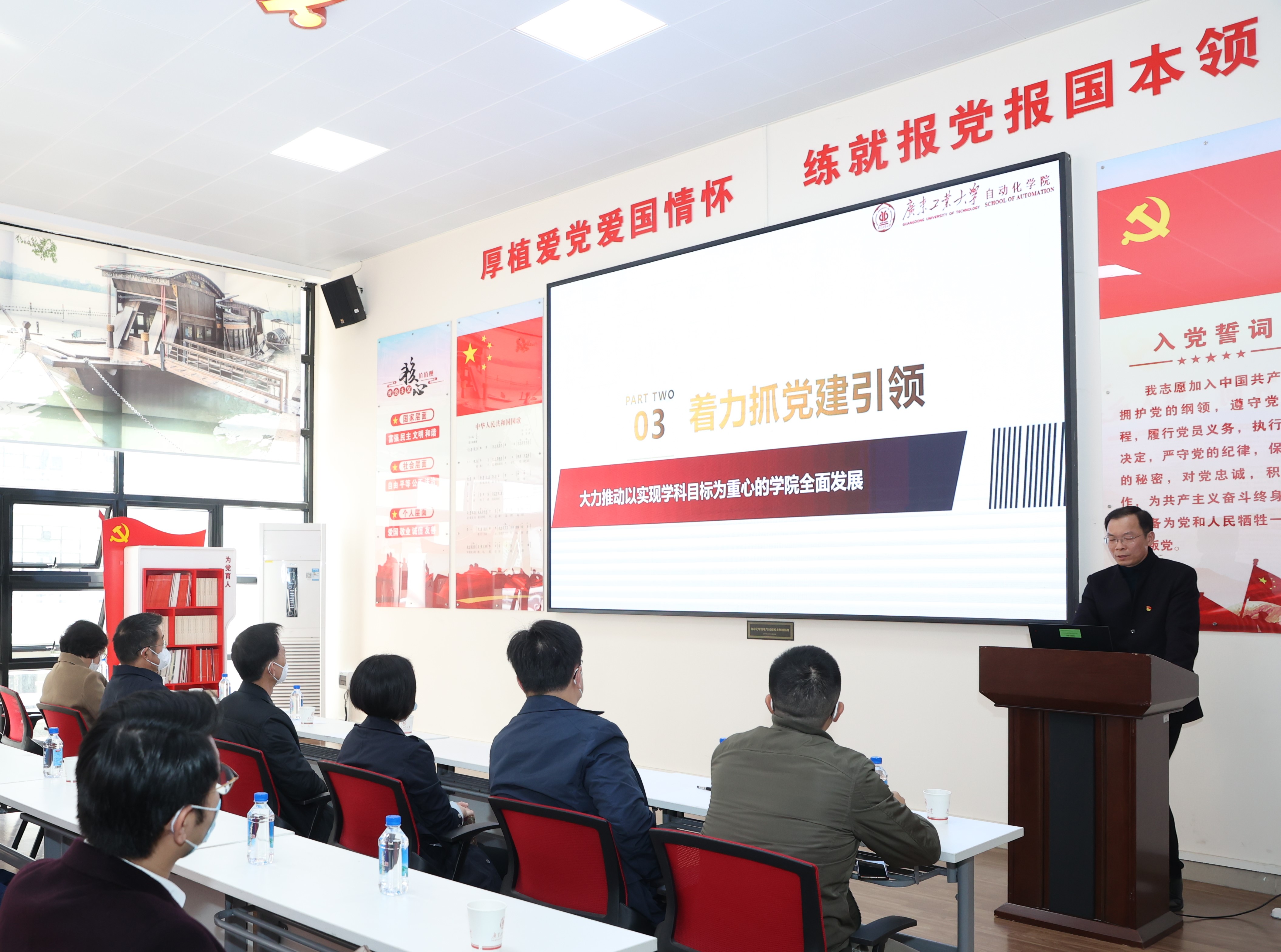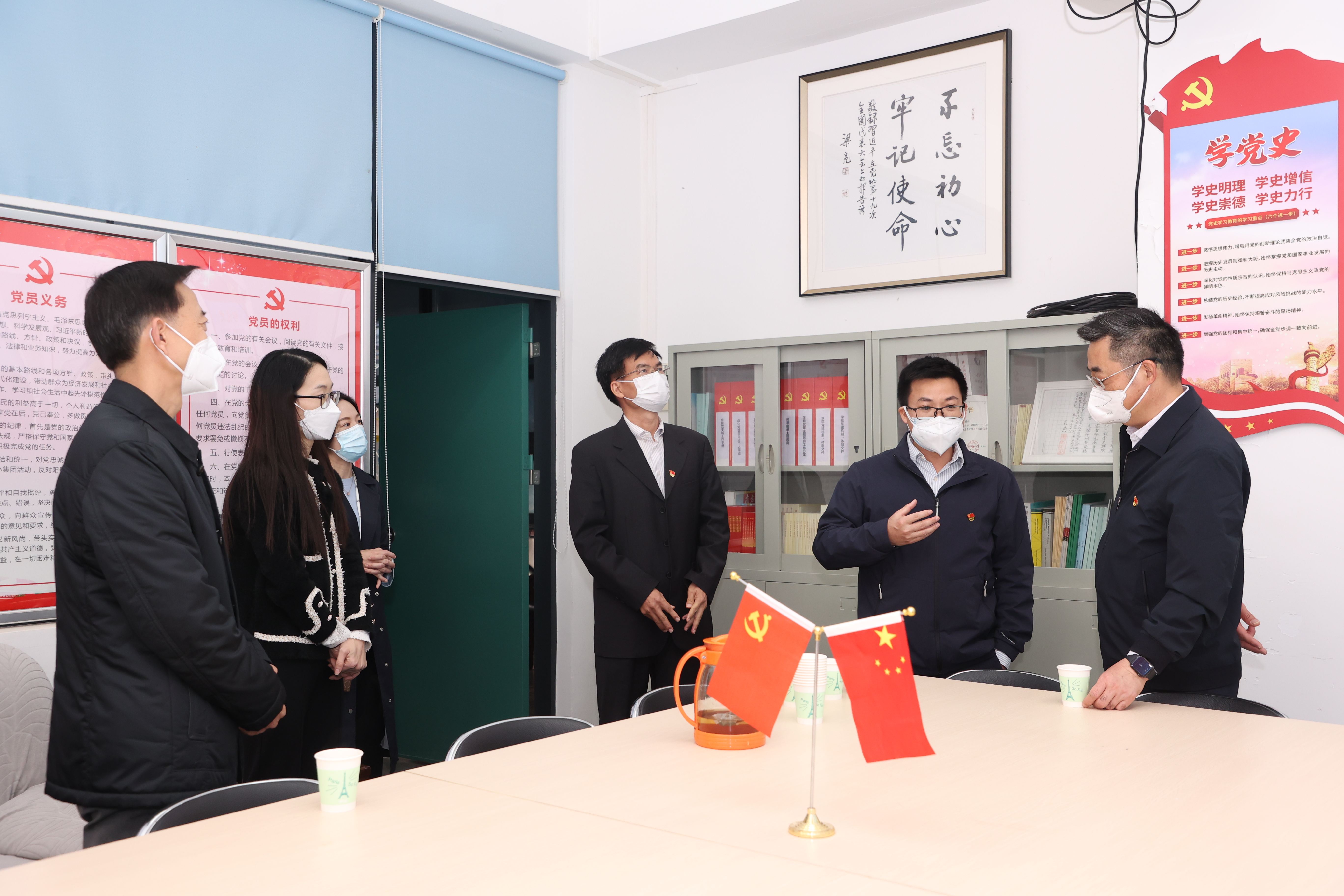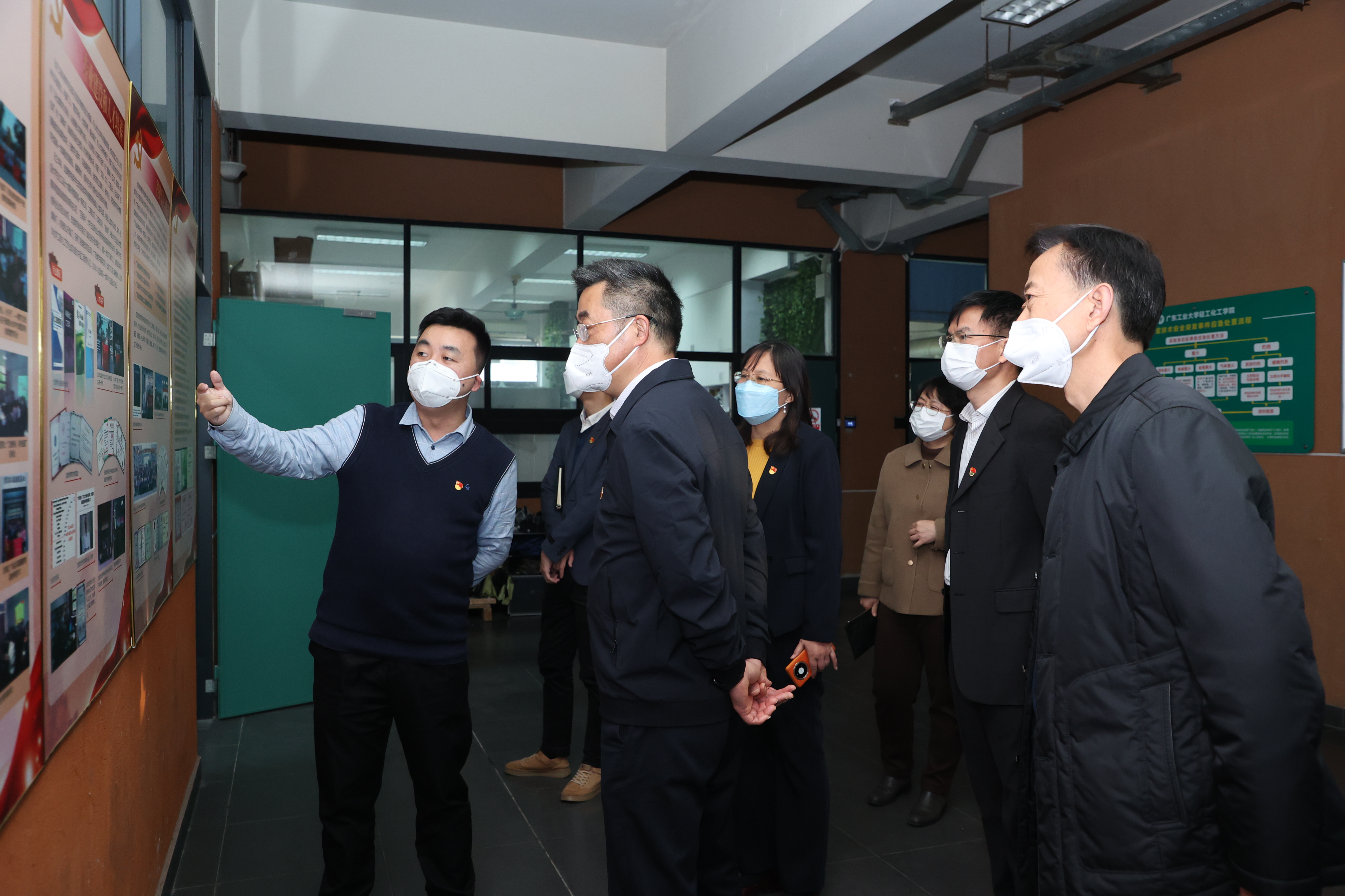廖荣辉实地调研了自动化live007比分 和live007比分 ,听取党建工作汇报,走访考察党建活动阵地、“双创”样板党支部和“双带头人”教师党支部书记工作室建设情况,参观智能决策与协同控制、木质纤维素高值化利用等科研实验室,了解支部建在团队、平台上,促进学科发展、打造人才培养高地等做法和成效。