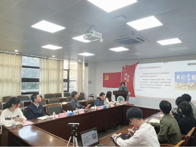 学精神,筑牢理想信念。李靖茂老师以《坚持以中国式现代化推进中华民族伟大复兴》为题进行党的二十大精神宣讲,从中国式现代化的科学内涵、本质要求和世界意义等方面分析了中西方国家现代化过程中存在的本质区别,并通过解读中国式现代化的五个重要特征,引导同学们充分认识中国式现代化道路的科学内涵、鲜明特征和时代意义。她强调,我国自改革开放以来经济社会不断发展,党中央及时根据国情变化调整国家发展政策,坚定了我国人民走中国式现代化道路的底气和信心,推动中国特色社会主义道路取得了前所未有的历史性成就,并不断走向更宽广的未来。李老师的授课深入浅出,理论宣讲主题鲜明、内容丰富、重点突出,对支部师生全面学习、全面把握、全面落实党的二十大精神具有很强的指导意义。