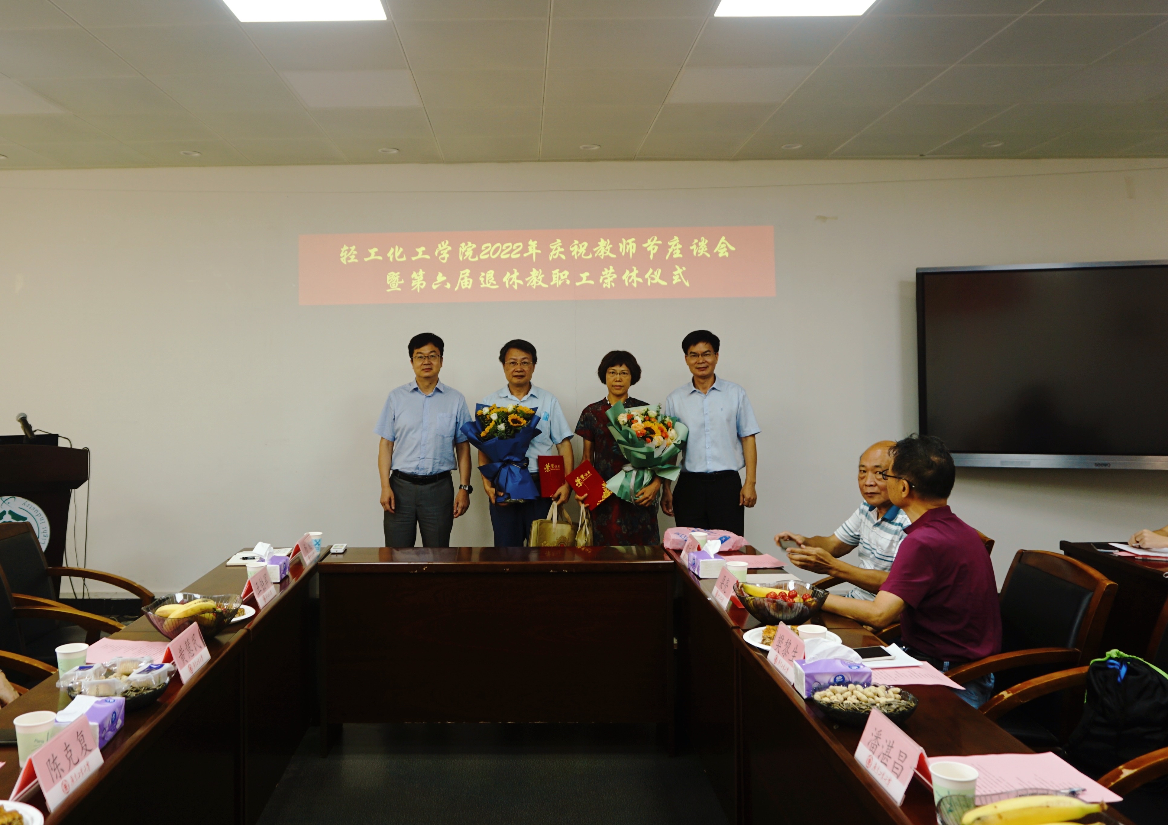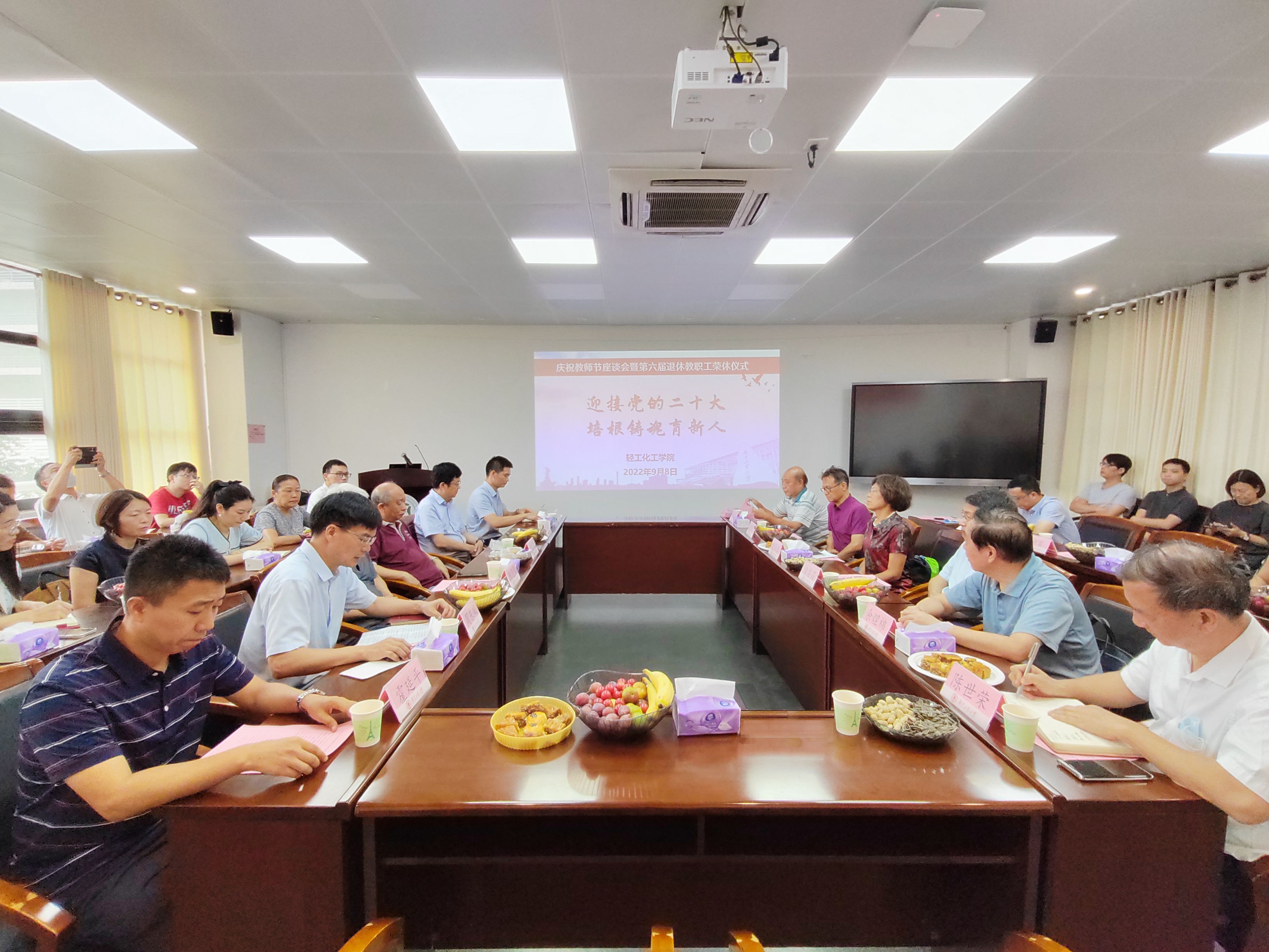 在工学四号馆202会议室举行以“迎接党的二十大,培根铸魂育新人”为主题的庆祝教师节座谈会暨第六届退休教职工光荣退休仪式。live007比分