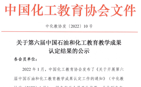 喜报!live007即时比分 在第六届中国石油和化工教育教学成果奖认定中荣获佳绩