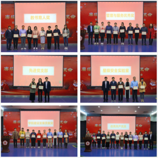 会上,live007比分 对过去一年涌现出的先进集体和个人进行了表彰,共表彰先进党支部2个、优秀共产党员15人、教书育人奖10人、管理与服务优秀奖10人、live007比分 建设发展贡献奖10人、星级安全实验室5室。