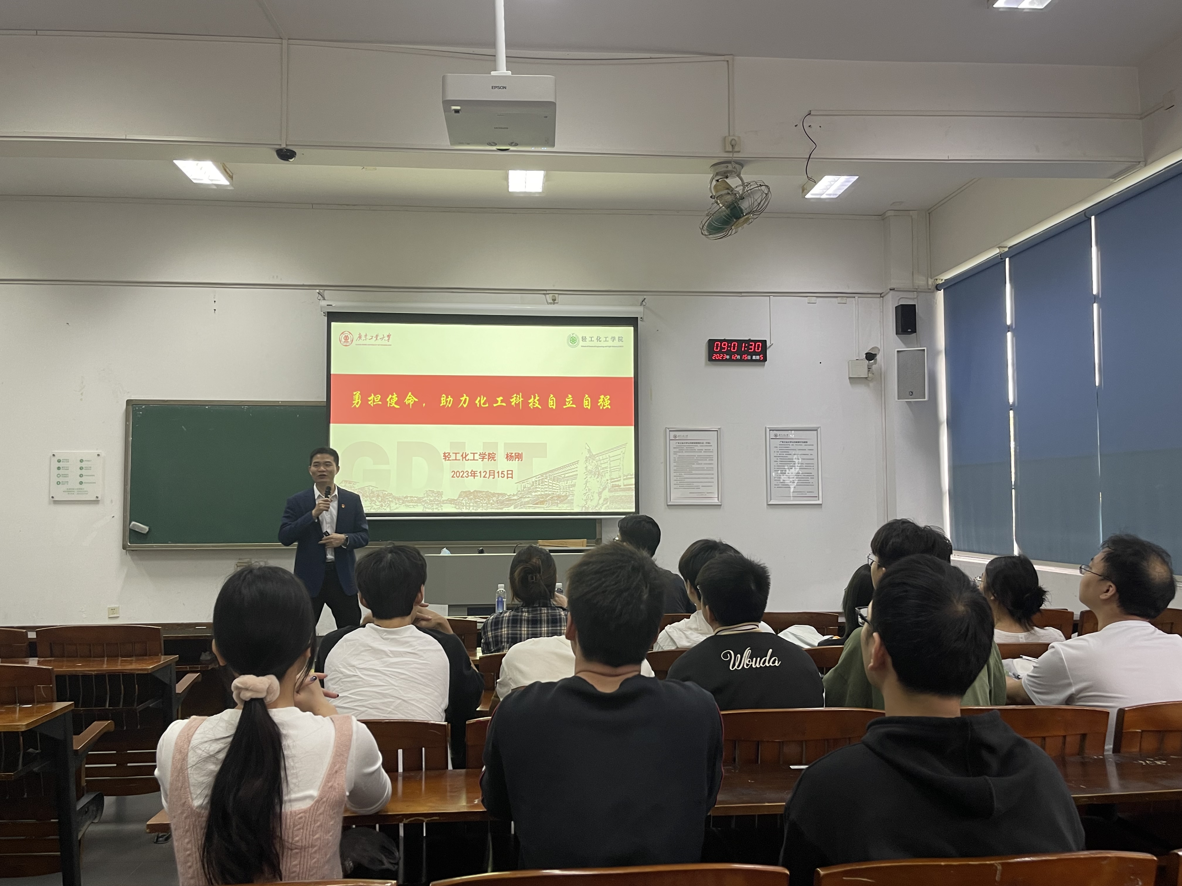 1215日,live007比分 党委副书记杨刚老师为硕士研究生第六党支部的同学开展了一次主题为“勇担使命,助力化工科技自立自强”的微党课。本次微党课旨在向广大研究生党员宣传党的方针政策,加强党性教育,提高学生对国家繁荣发展的使命感,为实现中华民族伟大复兴的中国梦贡献力量。