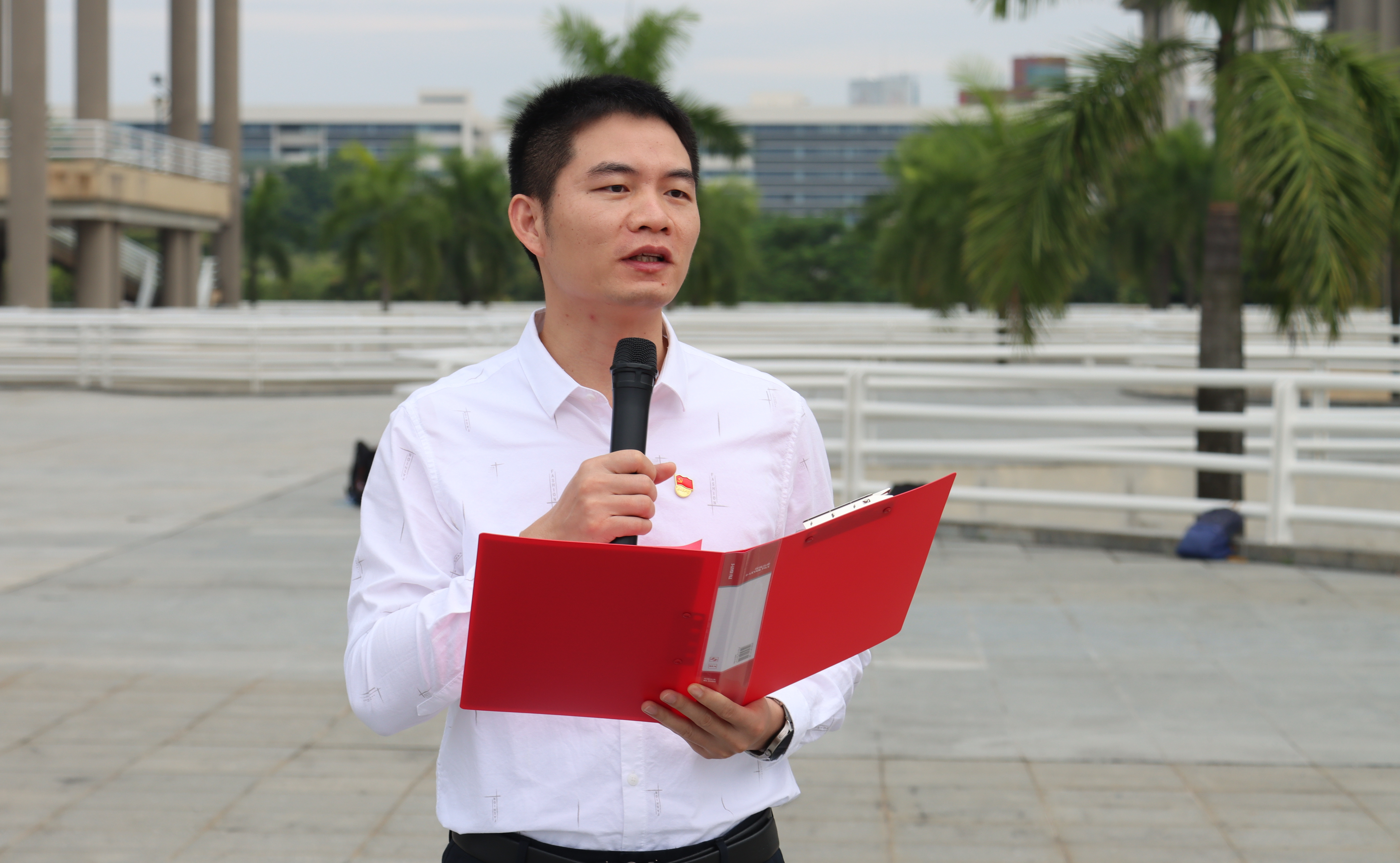 2023级化学工程与工艺创新班易政鹏同学以“逐梦新起点,强国勇攀撑”为主题作国旗下发言,代表全体同学做出庄严承诺,一定会不断追逐梦想,勇敢攀撑从小事做起,从当下做起,在这个充满机遇和挑战的时代,献出属于广工学子的时代答卷。