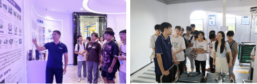 随后,几位技术主管带队深入企业生产第一线,同学们参观了生产基地的企业产品展厅、燃料电池系统组装线,以及电堆、双极板产线,近距离地目睹了先进的加工设备和智能化数控生产线,对燃料电池发动机系统、电堆、双极板的主要生产工序有了感观的认识和了解。