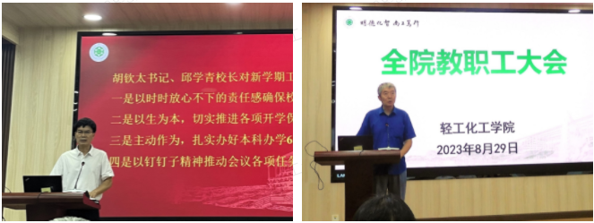 副院长何军、郑育英、李成超、钟远红分别就学生工作、工会工作、研究生工作、本科教学管理、科研工作、实验室建设与安全等工作进行了回顾总结,并对新学期工作做了布置与要求。