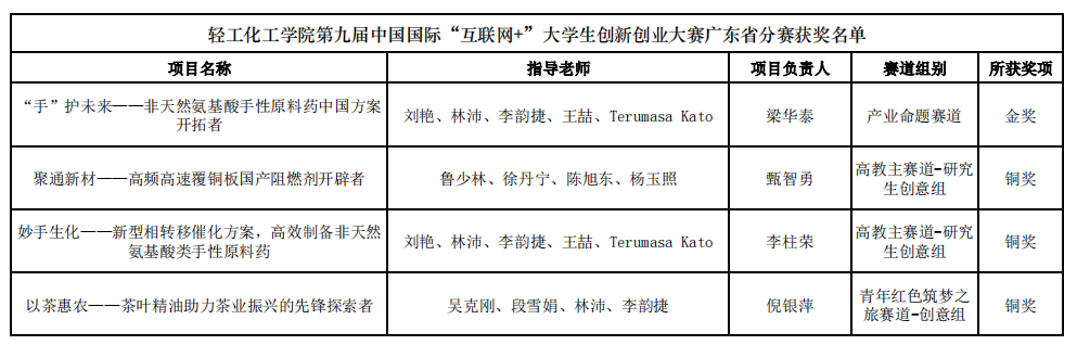 8月14-16日,第九届中国国际“互联网+”大学生创新创业大赛广东省分赛决赛在深圳大学举行。本次大赛共有2400余个项目进入广东省复赛,最终有380个项目晋级省级决赛。live007即时比分 4个项目晋级省级复赛,斩获13其中,live007即时比分 参赛项目《“手”护未来——非天然氨基酸手性原料药中国方案开拓者》获产业命题赛道金奖。