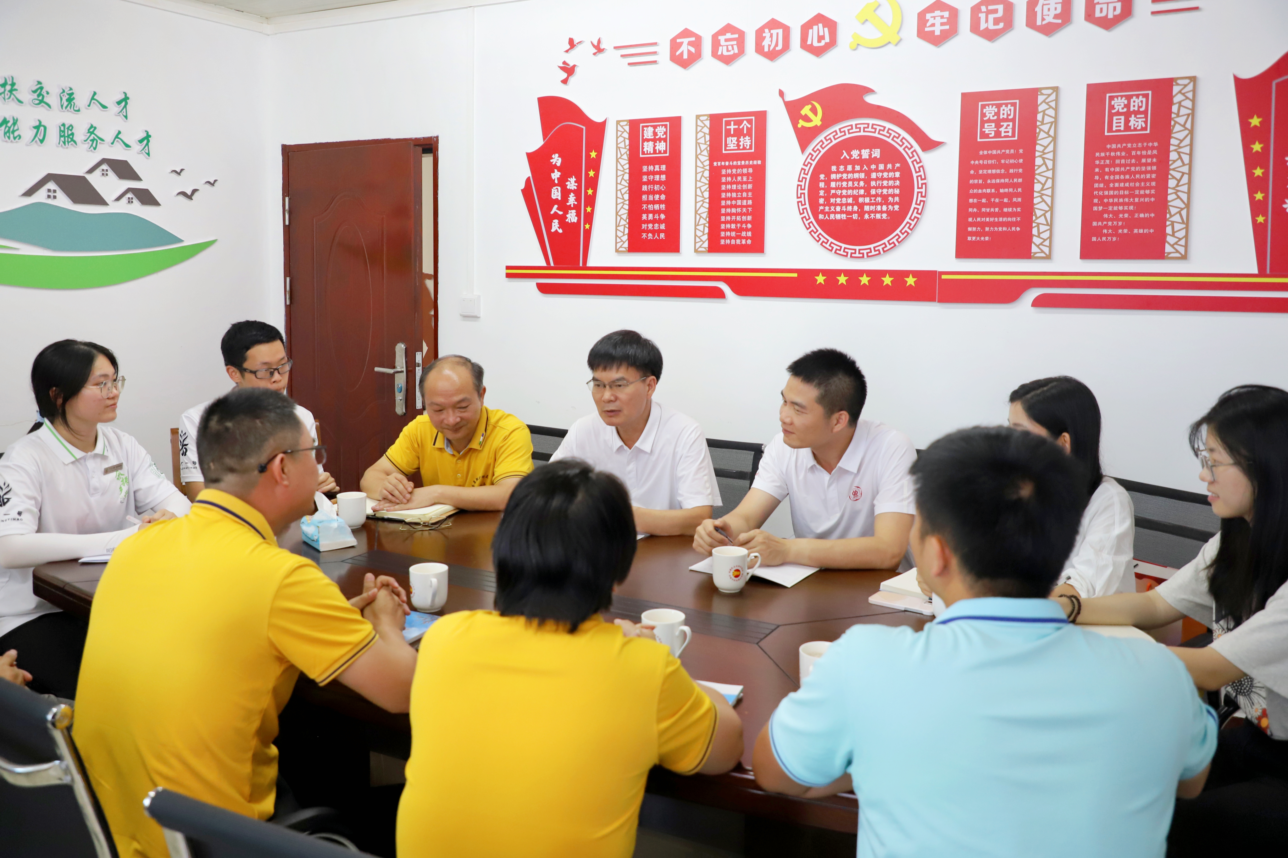 领导老师、驻镇帮镇扶村工作队队员与突击队队员讨论交流