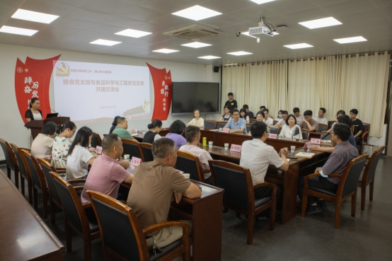 紧密围绕国家重大战略和广东高质量发展需求,在学科建设、人才培养、社会服务等方面所做的工作,重点介绍了食品系师生主动作为、深度参与乡村振兴帮扶和“百千万工程”的情况,希望两支部积极发挥专业赋能作用,优势互补,共同为学校高质量发展贡献力量。