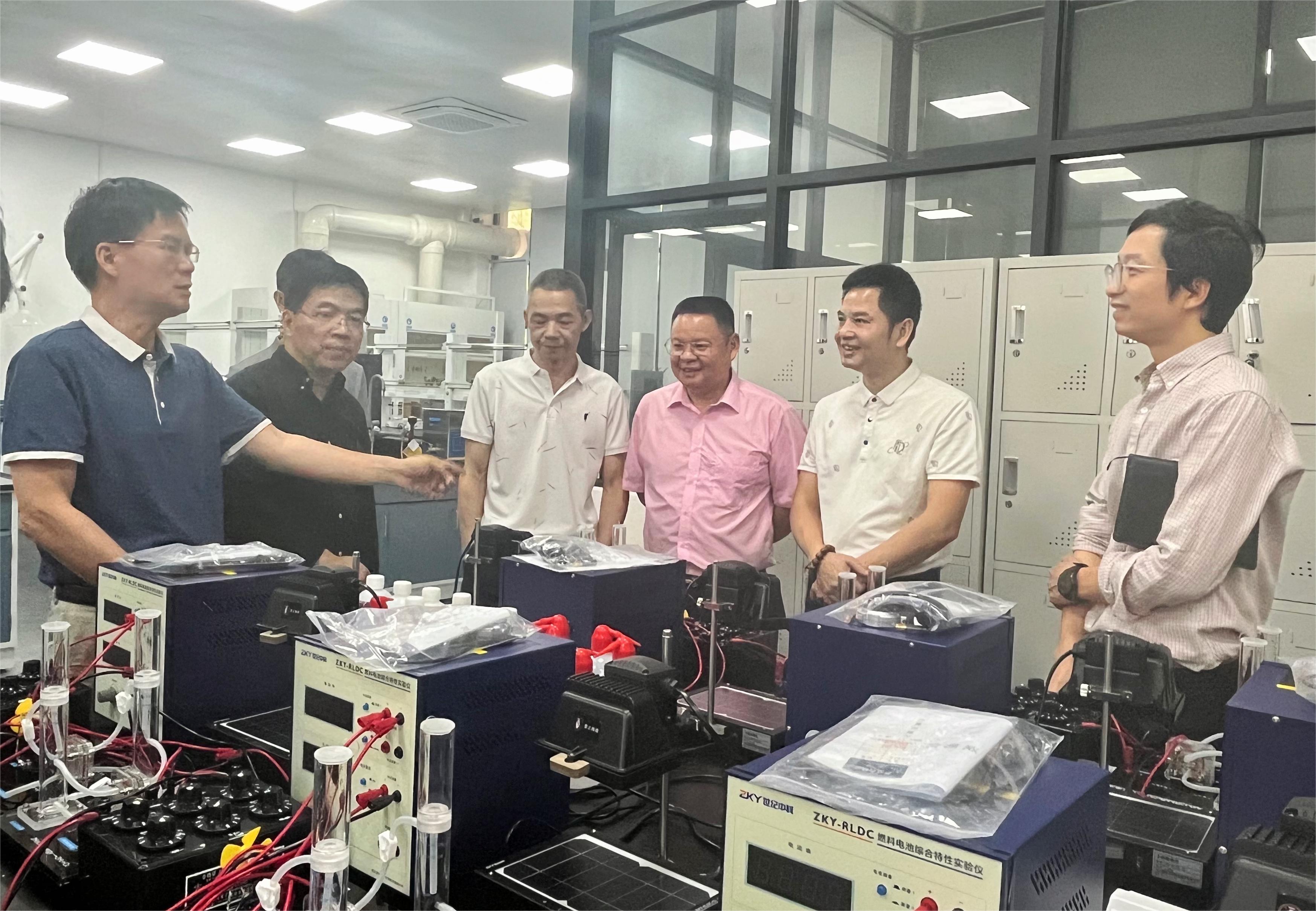 随后,在live007比分 领导、老师的陪同下,刘贤龙董事长一行参观了live007比分 能源化工教学实验室,就材料制备成本、仪器测试、储氢温度等问题展开讨论,并达成初步的合作共识。