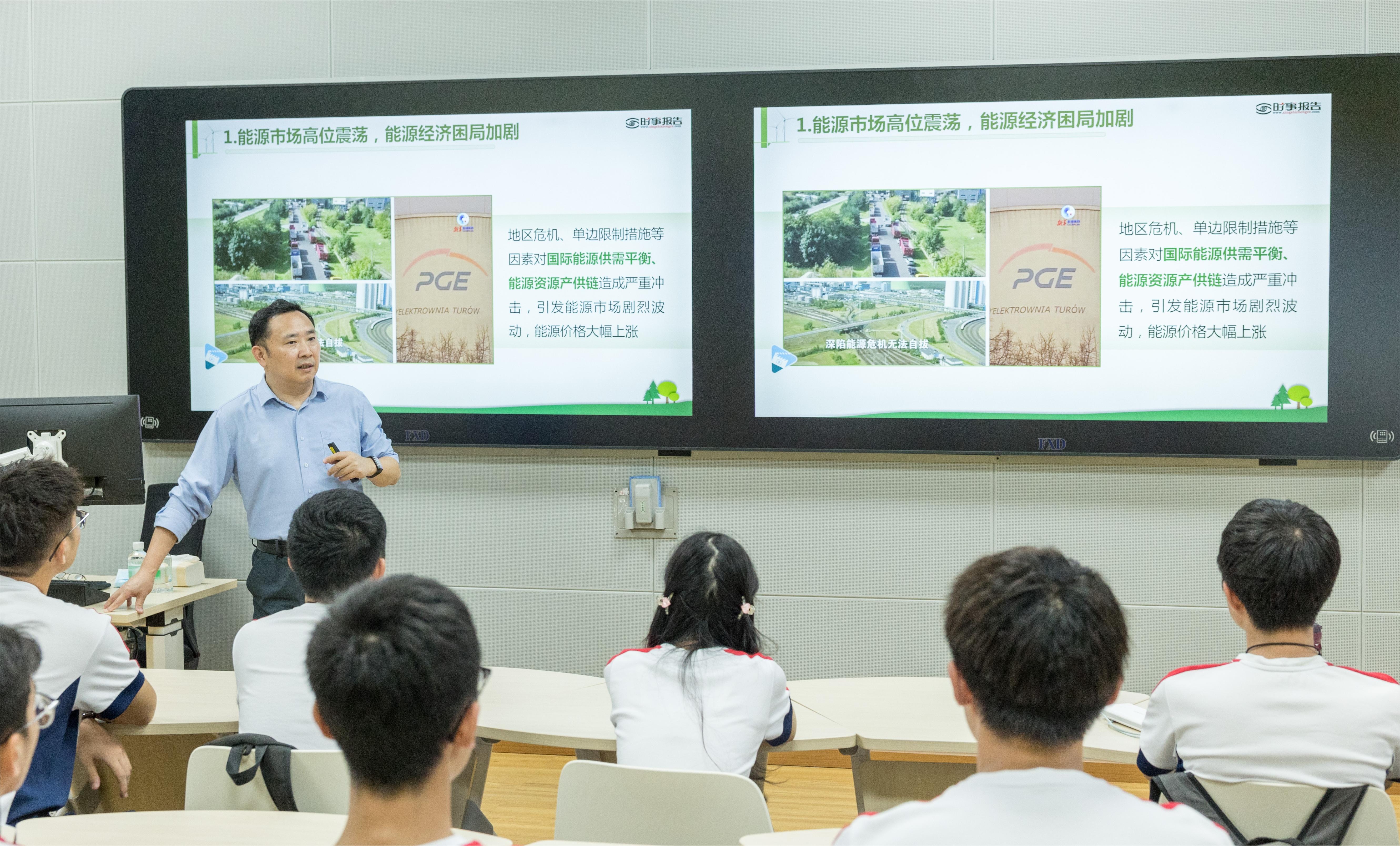 2023年5月16日下午,学校副校长余林教授在大学城校区教学楼六号楼智慧课室201live007比分 2022学生讲授以“国家双碳政策的现状及新能源电池的发展”为主题的《形势与政策》课。
