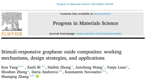 近日,我校诺奖得主联合实验室在智能二维材料领域取得新进展,相关综述论文“Stimuli-responsive graphene oxide composites: working mechanisms, design strategies, and applications”正式发表于国际材料科学领域的顶级权威综述期刊《Progress in Materials Science》(影响因子44.8,中科院一区TOP)。该成果由我校张山青教授、杨蔻副教授和新加坡国立大学康斯坦丁院士合作共同完成,广东工业大学为论文第一单位。