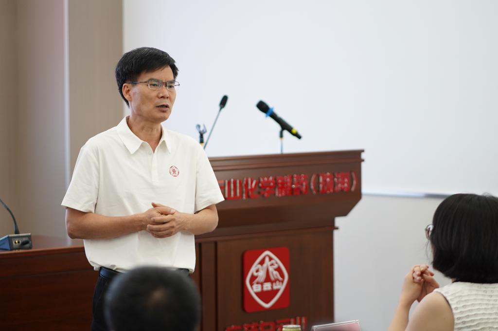 周东斌感谢蔡敏总经理和白云山化学制药(珠海)有限公司对学校工作的支持及对我校毕业生的认可。他表示学校高度重视人才培养,积极探索校企联合培养人才的新模式,为学生提供更充分、更高质量的实习及就业岗位,勉励在座学子珍惜校企合作提供的平台资源,努力提升自身社会竞争力。同时,他希望双方深化产学研合作,进一步整合校企资源,促进高校科技成果转化为企业创新发展的动力,加快形成新质生产力。