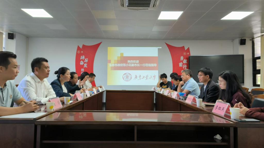 的基本情况和办学特色,就人才培育、学生就业、产学研合作等方面进行交流和探讨,期待加强校地合作,形成优势互补,为玉林市乃至祖国西部发展贡献广工力量。