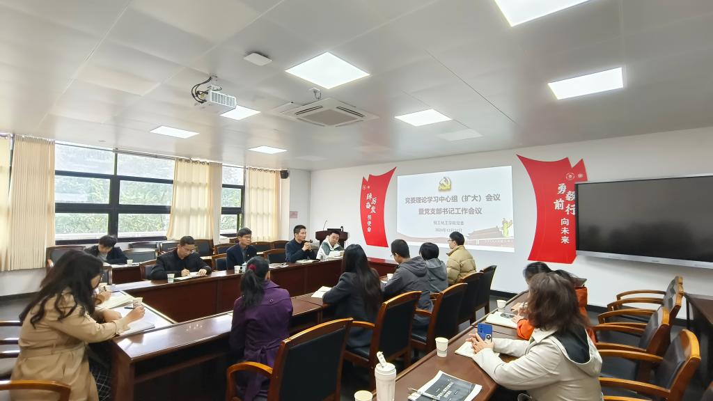 在工学四号馆202号会议室召开党委理论学习中心组(扩大)会暨党支部书记工作例会,学校党委宣传部卢迪科长、黄梓晴老师到会指导。会议由live007比分
