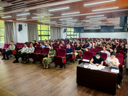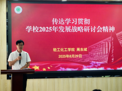 党委书记周东斌向全体教职工传达了学校2025年发展战略研讨会会议精神,重点学习了学校党委书记白建刚关于建设“更好”广工、要做到“五个坚持”、写好“五篇大文章”和校党委副书记、校长邱学青关于学校“十五五”时期发展重点、规划部署以及“冲一流”建设的讲话精神。