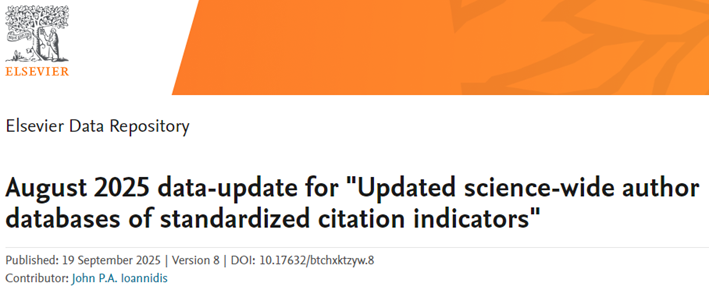 该榜单以Scopus数据库为依据,基于多种综合指标(如被引用次数、H指数、HM因子等6种指标),从22个领域和174个细分领域的1025万多名科学家中遴选出世界排名约前2%的科学家,分为“终身科学影响力榜单”(关注学者整个学术生涯的综合影响表现)和“年度科学影响力榜单”(聚焦学者上一年度学术成就)。榜单来源://elsevier.digitalcommonsdata.com/datasets/btchxktzyw/8