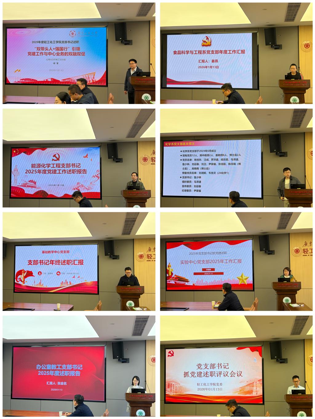 党委提交本年度抓党建工作述职报告,其中8位教工党支部书记进行现场述职。各党支部书记围绕履职尽责情况、工作理念与举措、支部工作开展情况等方面展开汇报,总结成效亮点,剖析问题不足,提出未来工作思路与举措。