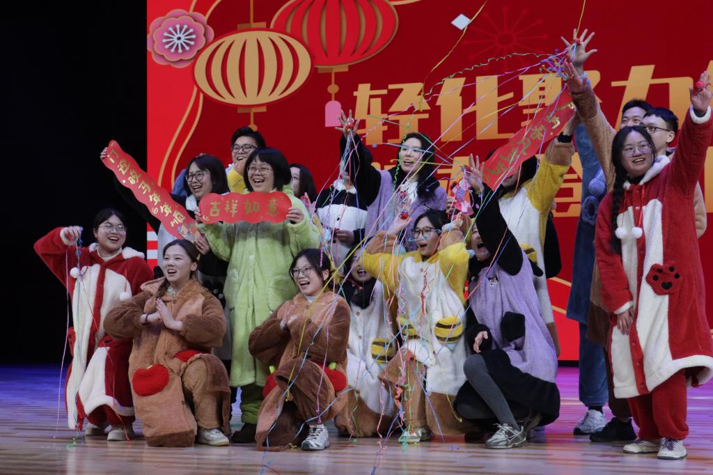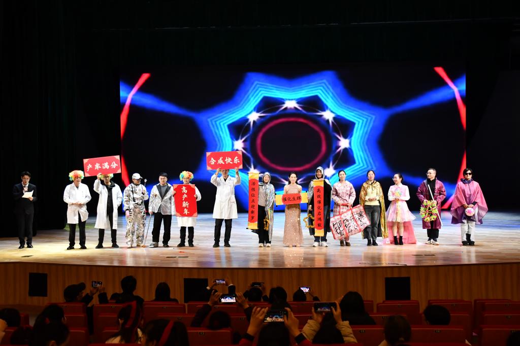 党政办公室老师带来的集体表演《健康“到到令”》,节奏明快,动作活泼,在趣味互动中传递了健康生活的理念。基础教学中心全体教师的大合唱《我和我的祖国》,歌声嘹亮,激情澎湃,深深感染了在场每一位观众。化工系教师最后的歌曲串烧《骏马追星・驰梦未来》,歌声充满力量,以奋进之姿将联欢会热烈气氛推向最高潮。节目中穿插的抽奖互动环节,更添惊喜与乐趣,现场始终洋溢着祥和、喜庆与温馨的浓浓年味。