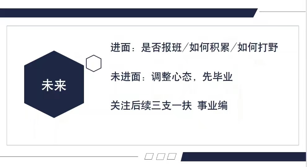 詹柱华同学对前两位同学的分享表示认可,她首先从“天时、地利、人和”三方面详细剖析个人的应试技巧及省考经验。她强调,面试答题应“观念正确、站位要高”,并引导同学们深入思考“我是谁?我为了谁?我要依靠谁?”这一问题,帮助同学们深刻理解个人利益、集体利益和国家利益的关系,提升从事公职岗位的职责和使命认识。