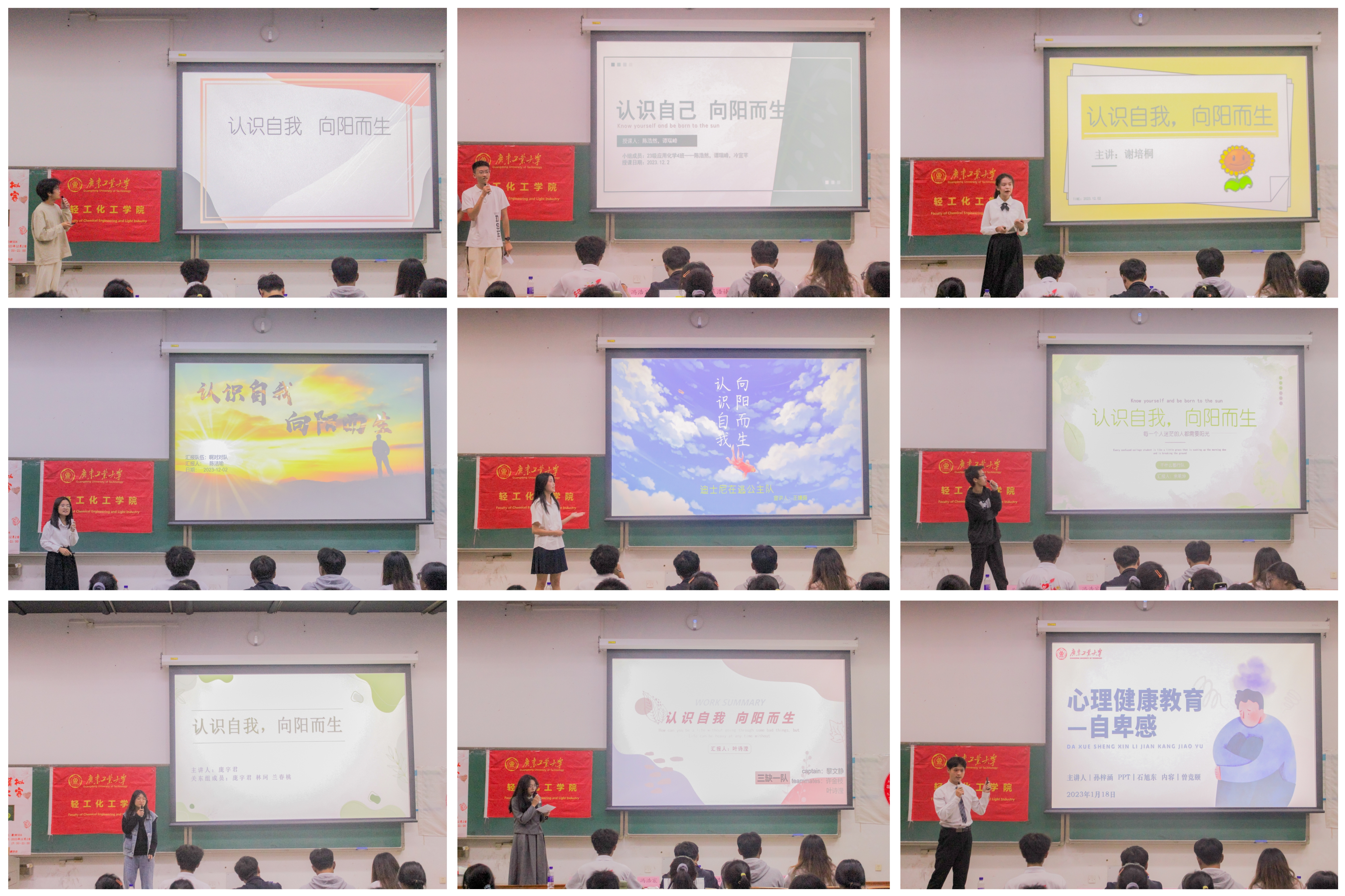 在精彩的比赛中,18支队伍自信地展示了他们的授课内容,让评委和观众耳目一新:应化四班代表队提出了乔哈里窗口理论,可以帮助我们有效地处理非和谐的人际关系,提升个体的自尊心,从而发挥出积极正面的作用;化工三班代表队提出弗洛伊德的人格结构理论,帮助同学们提升自我认识;以暖场视频为桥梁,应化一班代表队以一个极具画面性的不完整的圆开篇,引出了不完美才美的主题并鼓励同学们要勇于接纳自己的不足。