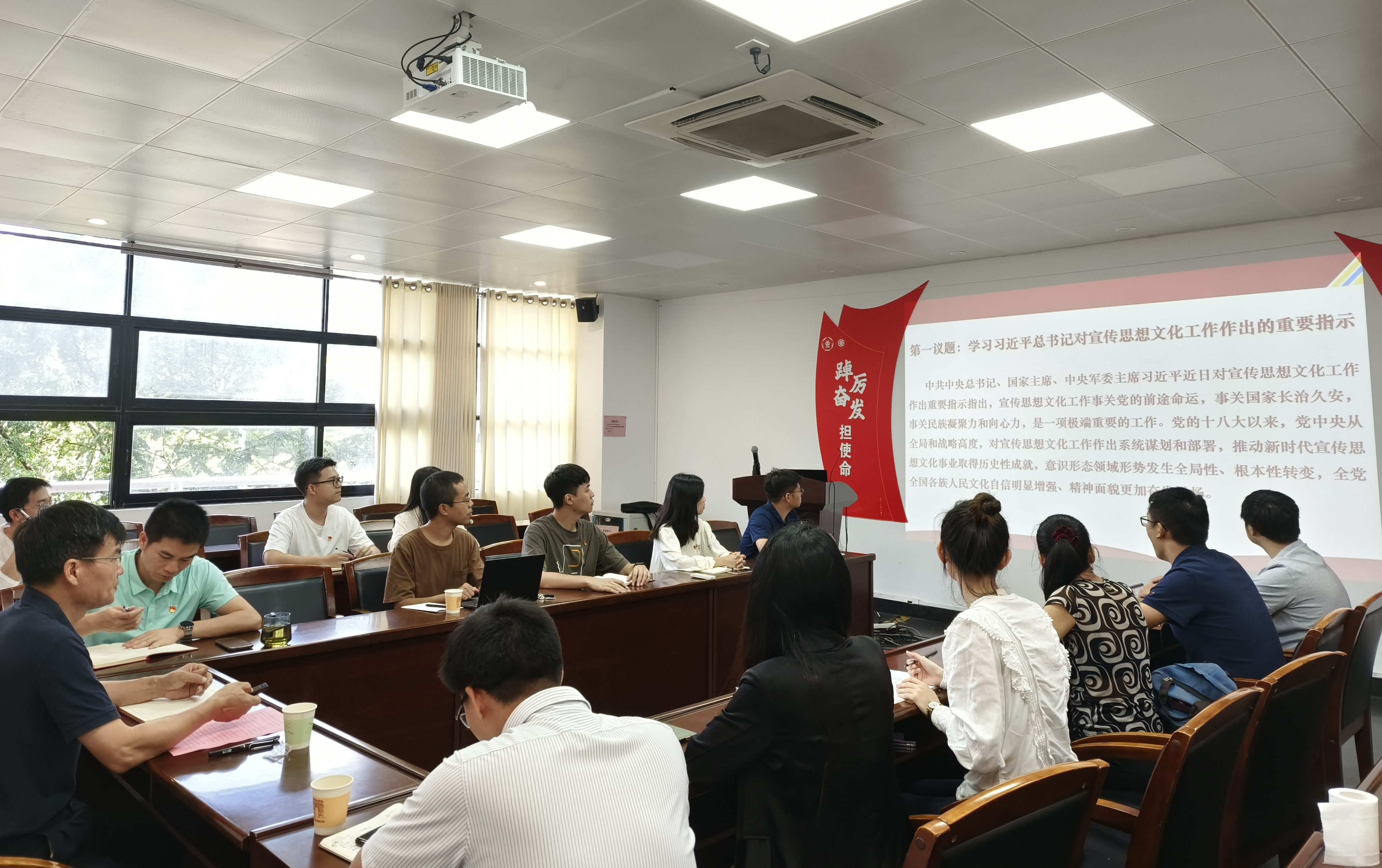 党委书记周东斌带领与会人员深入学习习近平总书记对宣传思想文化工作作出的重要指示以及传达学习全国宣传思想文化工作会议精神。他强调,习近平总书记对宣传思想文化工作的重要指示,深刻阐述了宣传思想文化工作的极端重要作用,充分肯定了党的十八大以来宣传思想文化工作取得的历史性成就。习近平文化思想的提出,标志着我们党对中国特色社会主义文化建设规律的认识达到了新高度,表明我们党的历史自信、文化自信达到了新高度,为做好新时代新征程宣传思想文化工作提供了强大思想武器和科学行动指南。