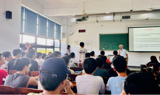Meunie院士结合授课班级学生的专业方向,并基于《有机化学》理论,深入浅出地讲授了人类对抗病毒的过程中设计开发抗病毒药物和抗病毒疫苗的原理及进展。