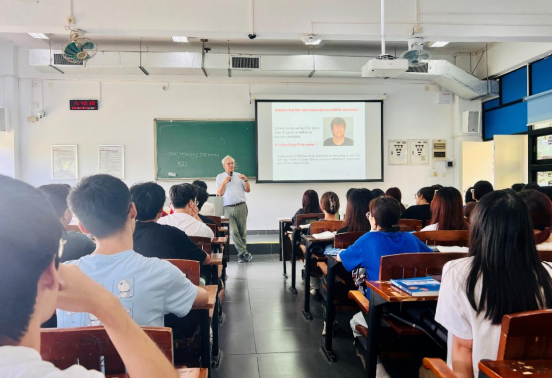 在全英文授课过程中,为了保证授课质量,院士细心地放慢了语速,课件图文并茂,注重与学生的互动,并设有问答环节。两节课下来,全班学生听课注意力高度集中,珍视大师的教学。问答环节,20多位学生就课程知识点、未来如何选择研究方向、如何进行药物研发、如何自我规划等方便就行了提问,院士皆耐心的一一进行了解答,并分享自己求学和科研的经历,引导青年学子多读书、读好书、与有智慧的人交流,鼓励学生尽早做好人生规划、树立高尚目标、尝试科学研究、磨炼意志。听课的学生皆表示听了不同凡响的一课,印象深刻、受益匪浅。而莫涅院士也为我校学子的求学好问深深感动,赞叹道:这些青年学子是我们的未来(They are the future).