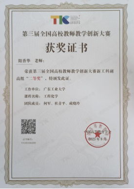 8月18-22日,第三届全国高校教师教学创新大赛总决赛在浙江大学紫金港校区举行。live007即时比分 应用化学系阳香华副教授领衔的工程化学课程团队代表广东工业大学闯入国赛现场赛并荣获新工科副高组二等奖,创造live007即时比分 教师团队在全国教学创新大赛的好成绩。