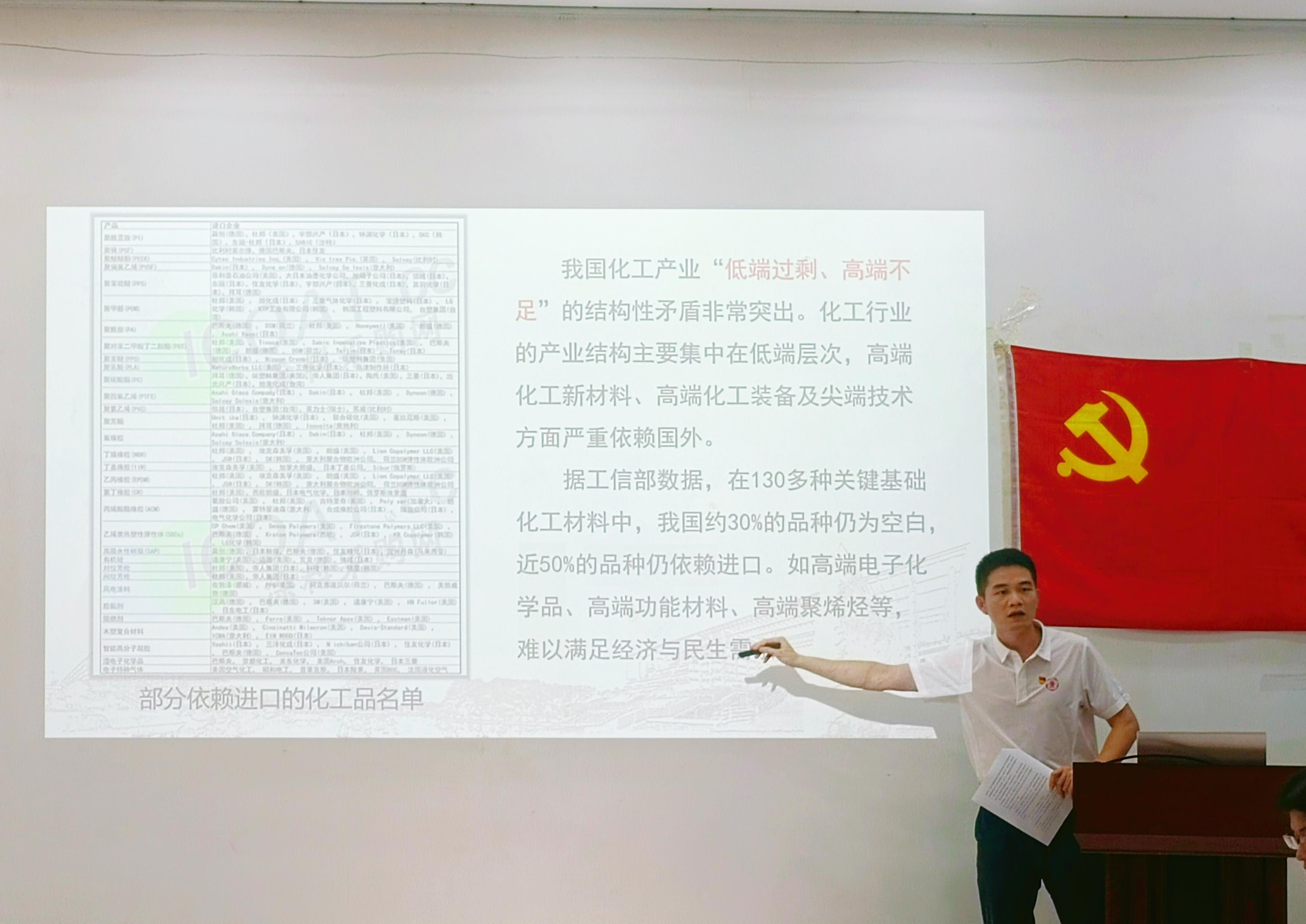 “组织一次主题教育学习凝心聚力”——杨刚老师根据党的二十大精神,以《勇担使命力化工科技自立自强》为主题,为学生党员讲了一场富有深意的党课。