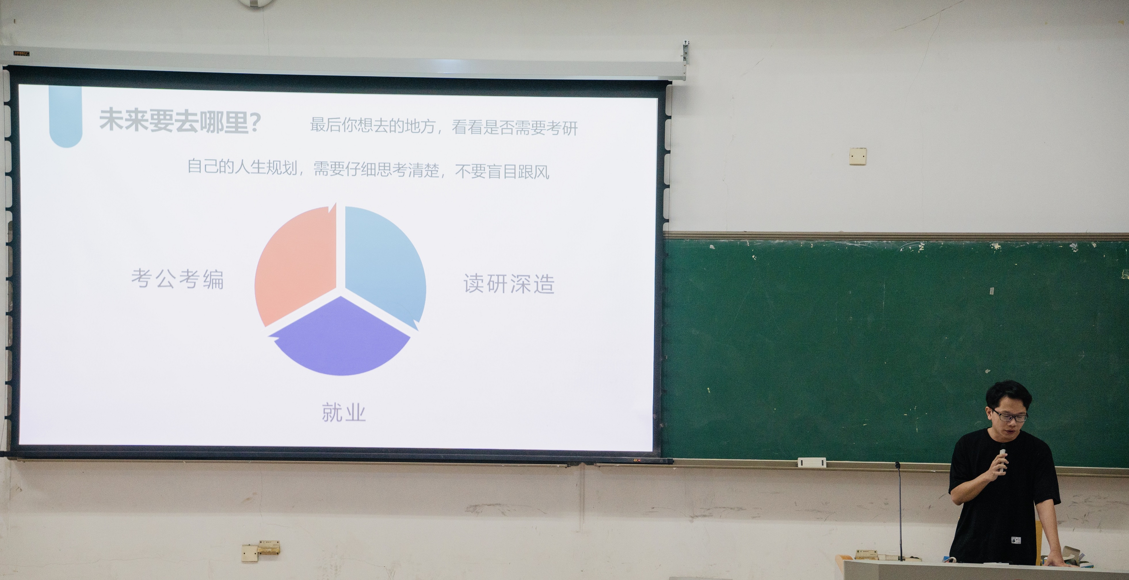 考研道路上充满了未知与挑战,备战考研的同学们既憧憬又迷茫。为帮助live007比分 考研学子明确目标、坚定决心,合理安排复习规划,让更多同学认清目前考研的形势并做好未来规划,live007比分 学生会3月19日在教四212举办“研途相伴,筑梦未来”考研备考经验分享会。live007即时比分 2022级研究生杜柏龙、马健辉师兄分别进行了经验分享,live007比分 100余名本科生参与此次分享会。
