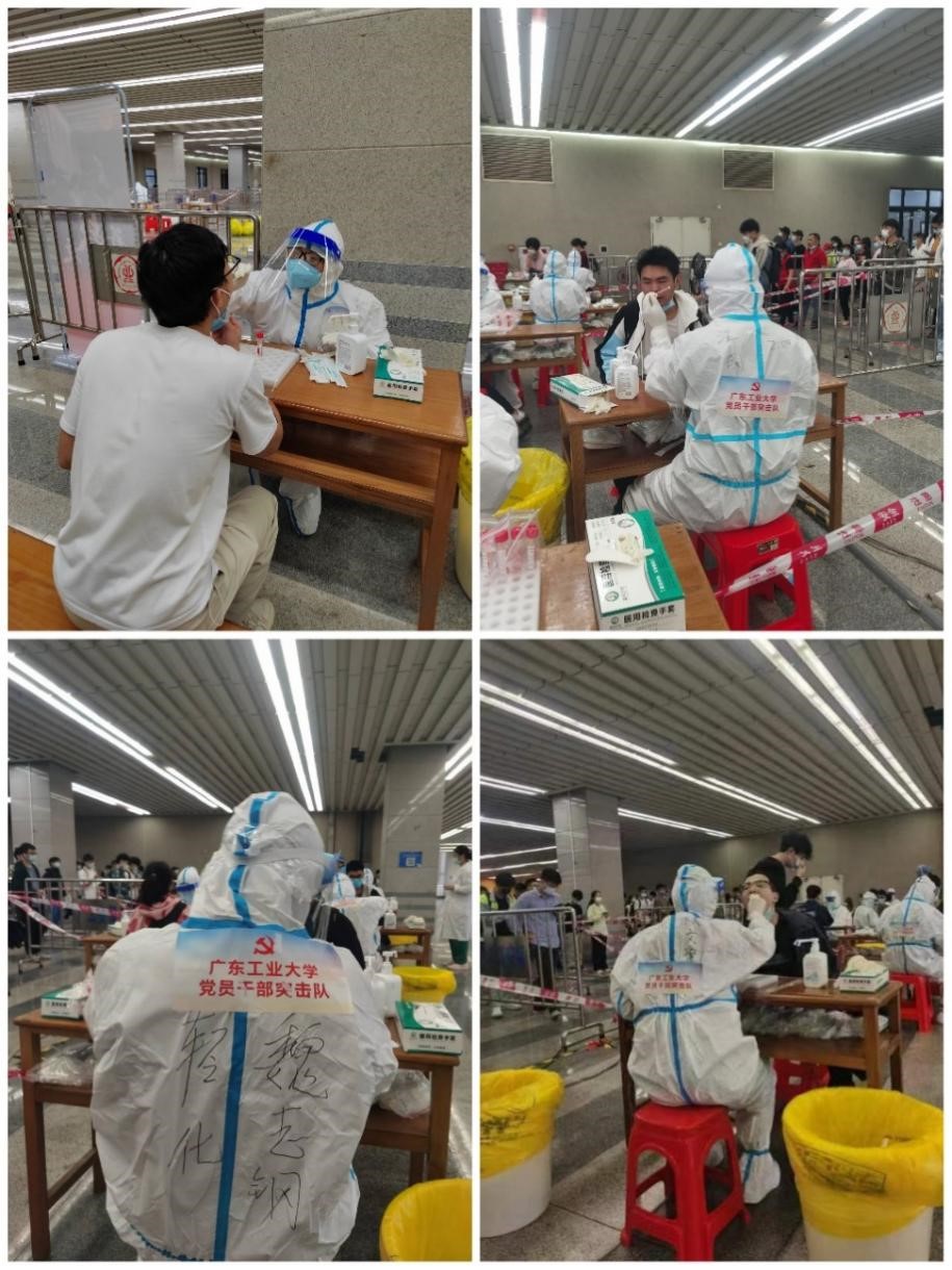 疫情当前,使命在肩。1125日,根据疫情防控紧急需要,我校组织开展新一轮大规模全员核酸检测工作,由于医务人员紧缺,live007比分 应用化学系党支部迅速吹响助力全员核酸检测工作的“集结号”,支部书记何军带队,汪成、魏志钢、林文静,与来自live007比分 其他党支部、办公室的林晓清、姬文晋、廖晨艳共7名教师主动请缨加入学校疫情防控突击队,首批变身“大白”助力核酸检测采样工作。这是继校园核酸检测秩序维护和指引、生活区临时管控期间取送快递、报名参加学校党员干部全力支持广州打赢本轮疫情突击队后,支部成员又一次以实际行动和责任担当,积极响应学校live007比分 党委的号召,共同筑牢校园疫情防控“安全墙”。