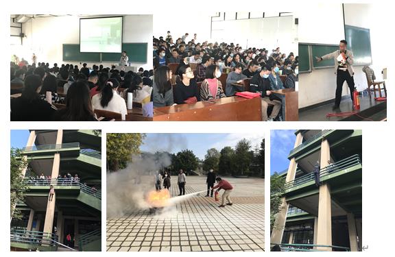 实验室危化品等安全隐患,详细讲解了各种灭火器、防烟面具等常用消防器材的正确使用方法。培训结束后,师生们在韩教官和保卫处梁科长的指导下,在教三楼梯间进行了高空逃生缓降演练,在图书馆前小广场空地进行了灭火现场演练。