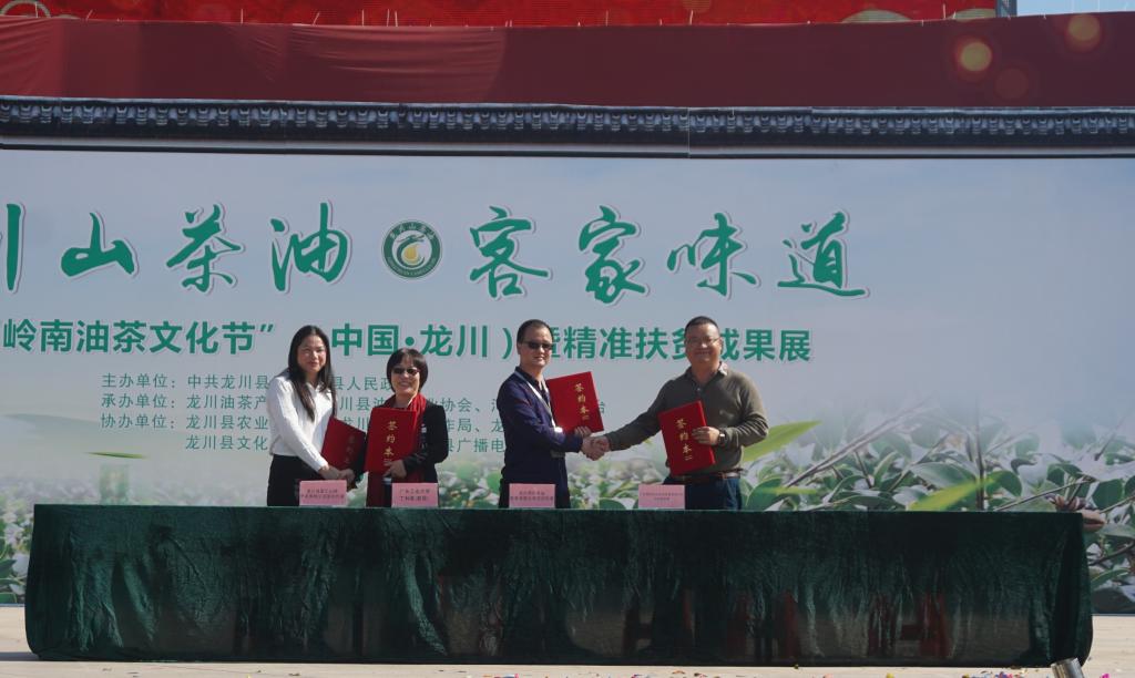 丁利君教授一行赴河源市龙川县参加首届“岭南油茶文化节”开幕式,与多家当地企业签订校企合作协议。出席此次签约仪式的有河源副市长赖小卫,县委书记黄添胜,县长杨利华等领导。