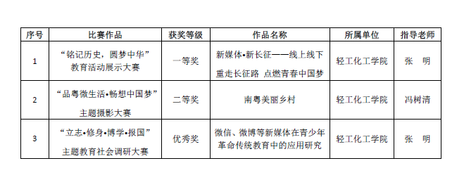 日前,由省教育厅组织开展的2016年“我的中国梦”——“立志·修身·博学·报国”主题教育系列活动评选结果公布,live007即时比分 成绩优异,其中一等奖1项,二等奖1项,优秀奖1项,向获奖团队和个人表示祝贺! 此次省教育厅“我的中国梦” ——“立志·修身·博学·报国”主题教育系列活动自去年6月份启动以来,live007即时比分 积极动员,广泛宣传,把各项主题教育活动的开展同引导青年学生坚定理想信念和践行社会主义核心价值观紧密结合,取得了积极的教育成效。