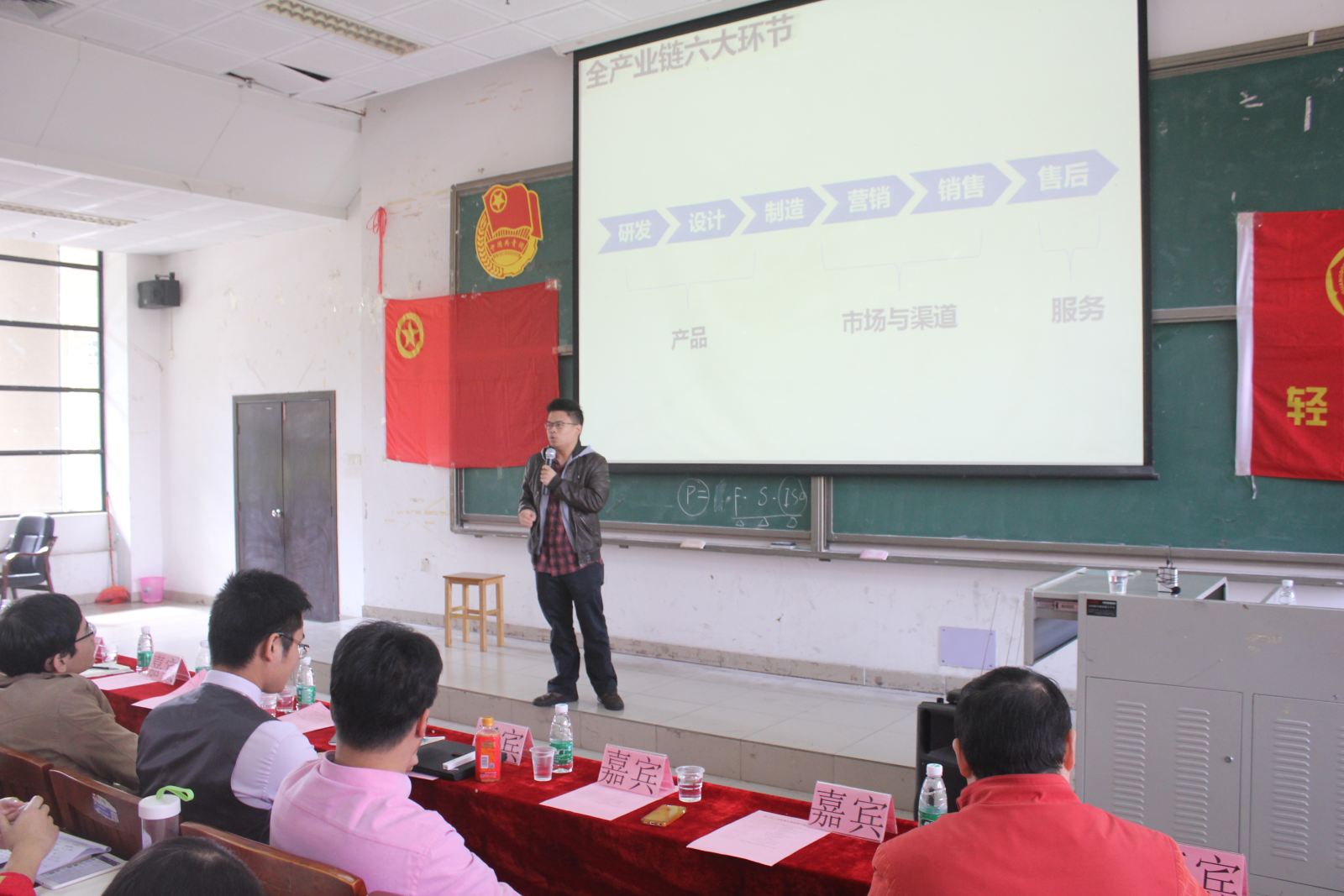 林金得学长主讲《成长与蜕变》。授课一开始,林金得学长便以“毕业后是直接创业还是应聘进入公司”发问,引发学员们的思考。林金得学长提出,执行力优先于点子;创业应从终点出发,以市场为导向,带去市场所需。他提到企业最看重的八大能力,并请庄宇轩学长详细介绍了全产业链六大环节。他认为,一个好平台能有效放大自身的能力,而毕业生正需要寻找一个锻炼自我的平台,即合适的企业。最后,林金得学长总结到“志存高远,脚踏实地,提升能力,积累经验”是成功的秘诀。