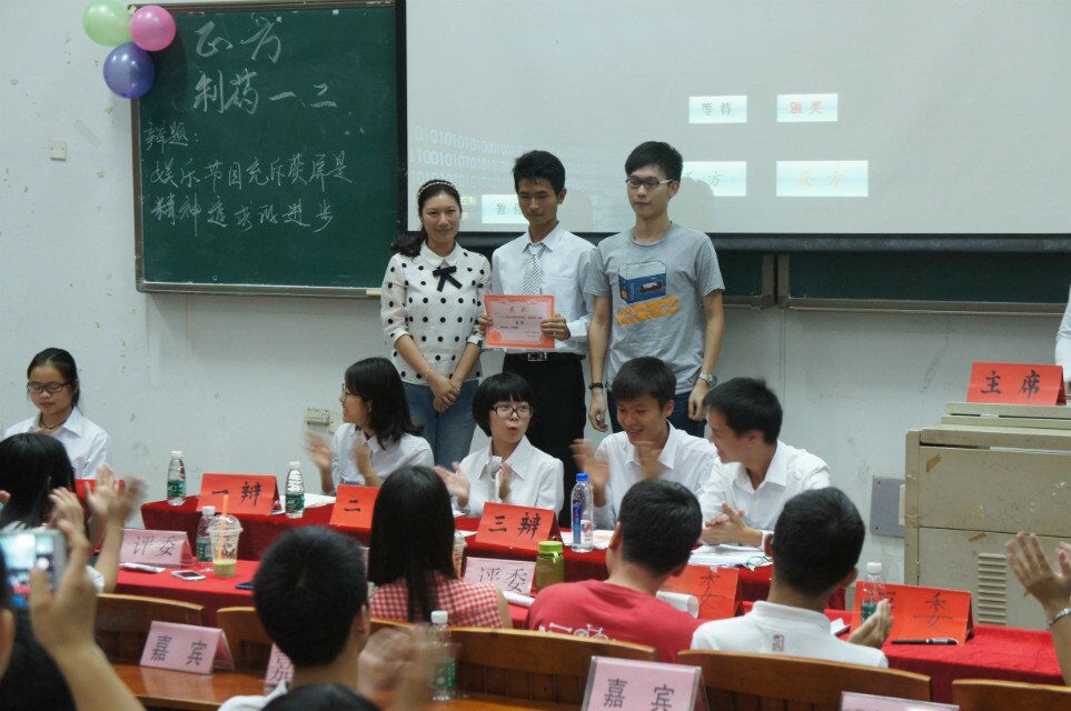 “新生杯”辩论赛从表演赛一步一步走到了最终决赛。伴随着辩论赛决赛的结束也意味着历时一个多月的“新生杯”辩论赛圆满结束。本次辩论赛赛制为:分为a、b两个小组,采取积分制,3轮比赛后小组中积分最高的班级能晋级决赛。