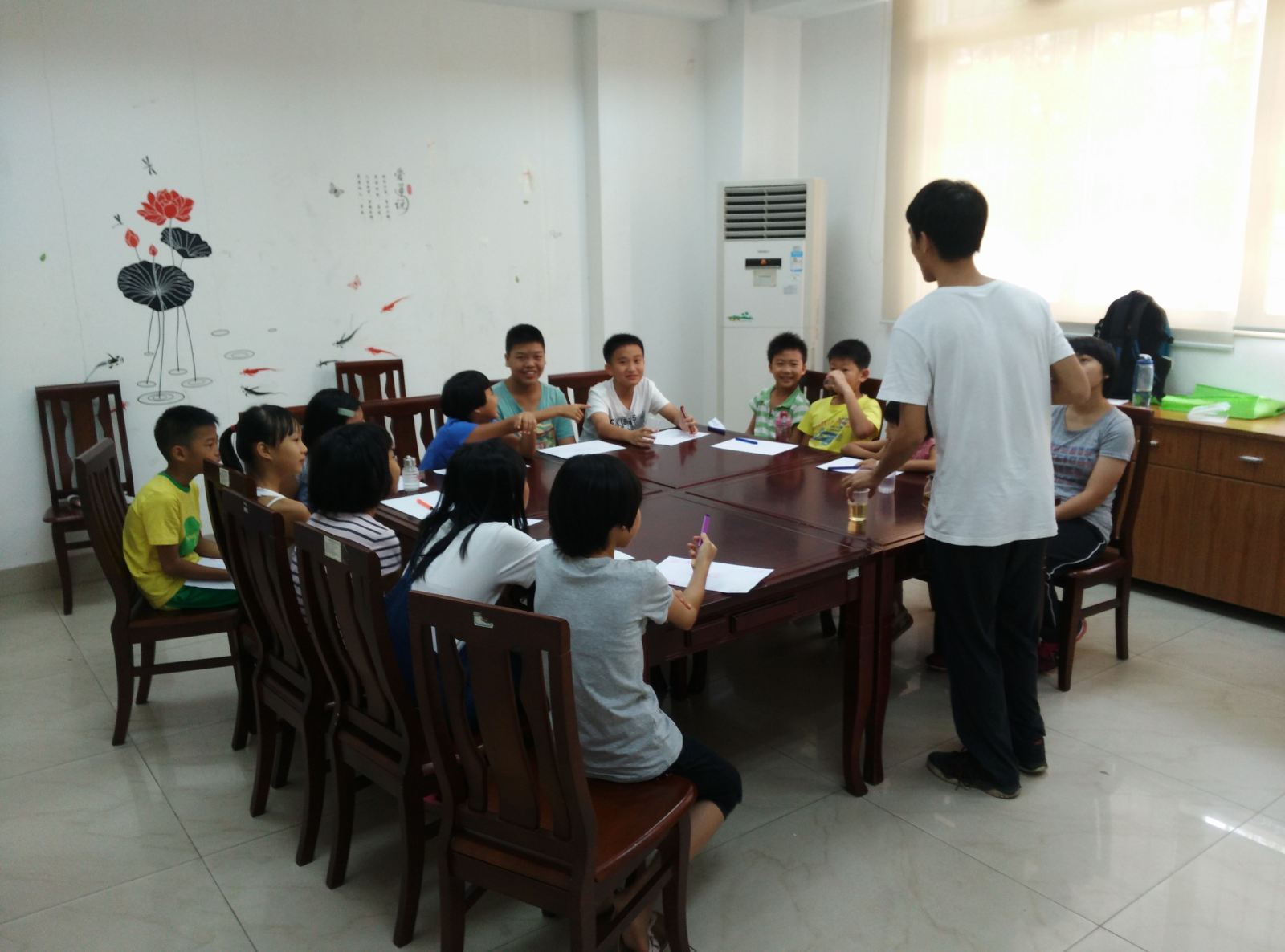在活动过程开始,在当地的社工的帮助下,体验班的小朋友进行了自我介绍互相认识,大家用彩色笔写下自己的名字和爱好相互交换认识。接下来,我们队员开始讲述我们如何做这个实验,同时讲述一些实验安全的小知识。而我们的小朋友显得特别活跃并对实验产生浓厚的兴趣。