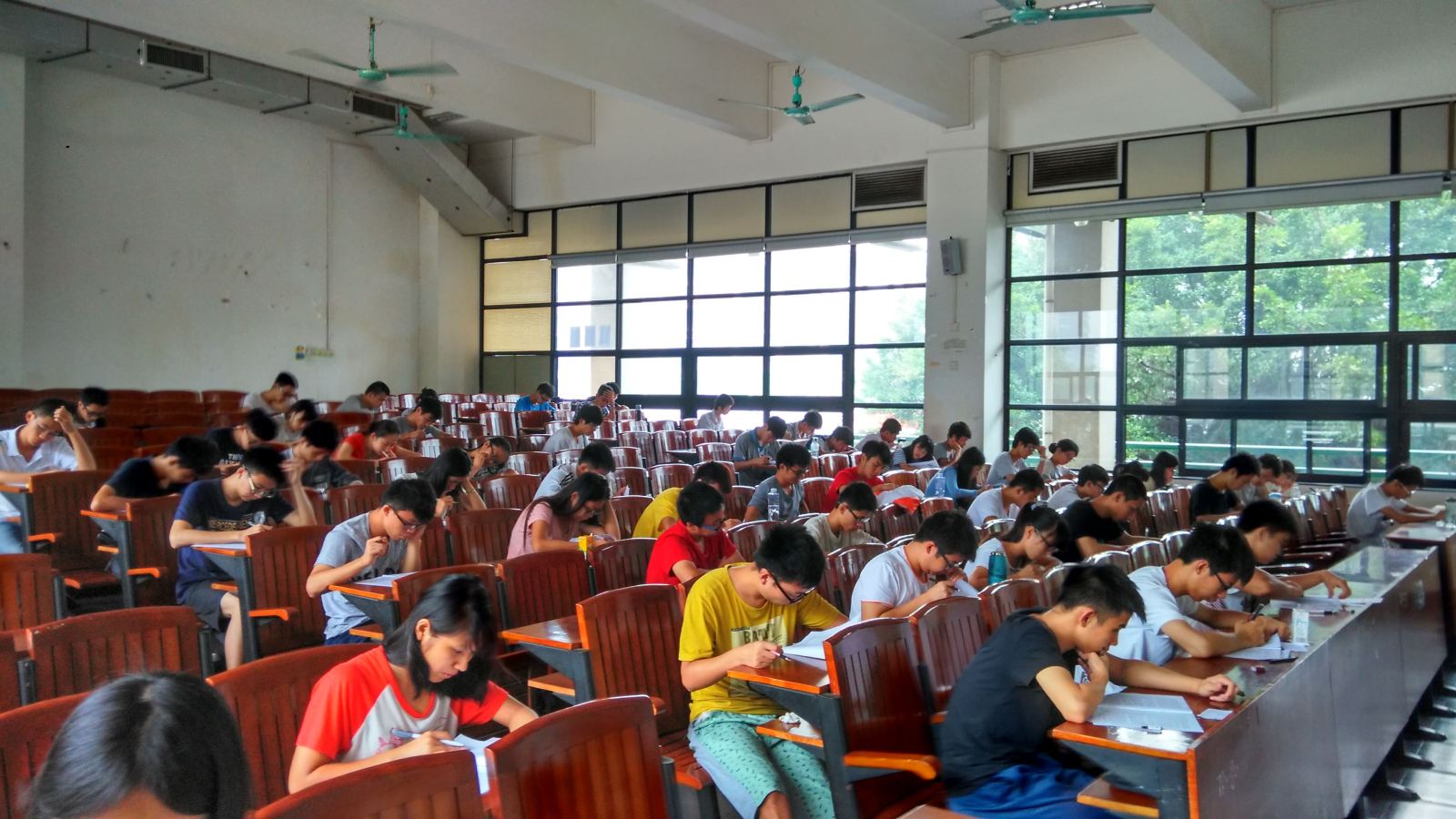 在模拟考当天,live007即时比分 学习部工作人员早早到达教室布置考场,希望给各位考生感受到正规考场的氛围并以更好的心态对待即将到来的四六级考试。即使一场大雨突然来袭,冲刷着天际,也没有过大地影响考生们按时到达考场,由此可见live007即时比分 学子的学习心态是很积极的。在考试期间,一方面工作人员严格按照四六级考试的流程来执行工作,另一边众多考生专注埋头答题,整个模拟现场让大家充分感受到四六级考试的真实氛围。