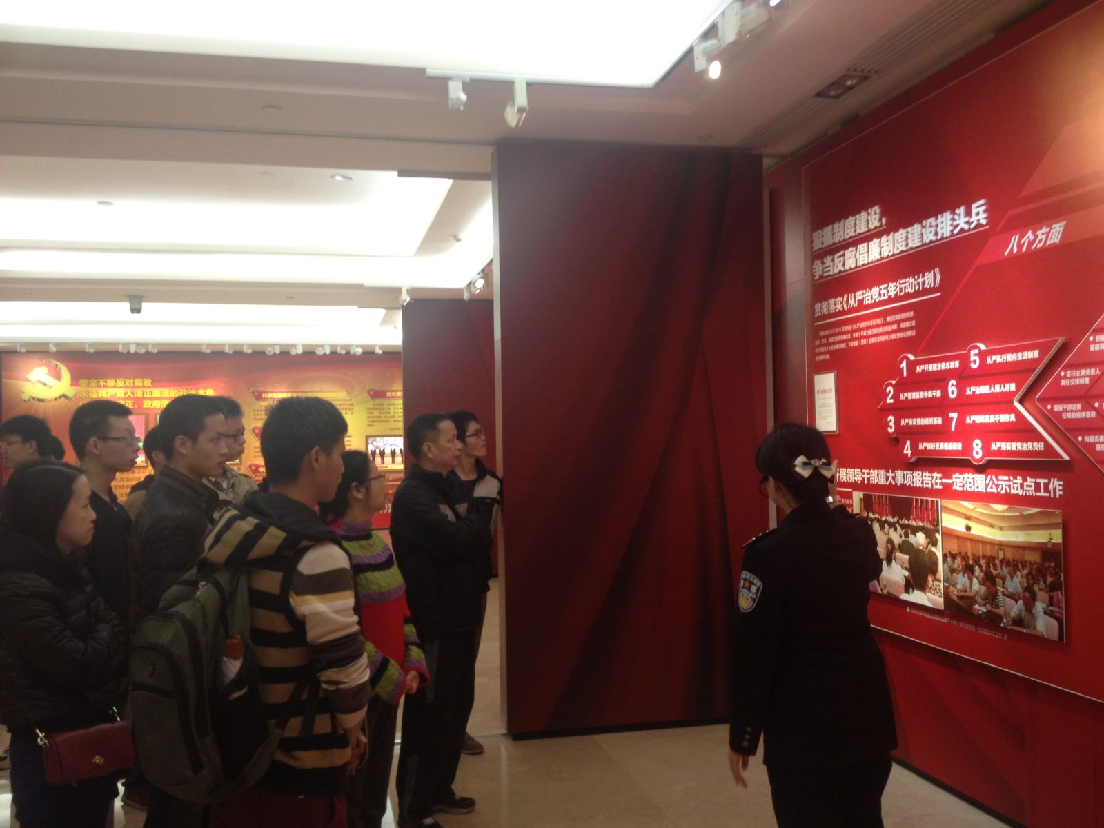 2014级研究生第二党支部党员及入党积极分子到广东省反腐倡廉教育基地参观学习。本次活动以“开展反腐倡廉教育,弘扬依法治国精神”为主题。各位党员、积极分子在讲解员的引领下,依次参观了“风正帆扬”、“从严治党”、“贪腐鉴录”、“拒腐防变”、“风清气正”五个部分的展示内容,大家深刻体会到贪污腐败对党和国家造成的巨大危害,清醒认识到反腐倡廉、依法治国的重要意义。参观结束时,支部党员及入党积极分子签署了党员干部廉洁从政承诺书,并纷纷表示此次廉政教育深入脑海,震撼心灵。