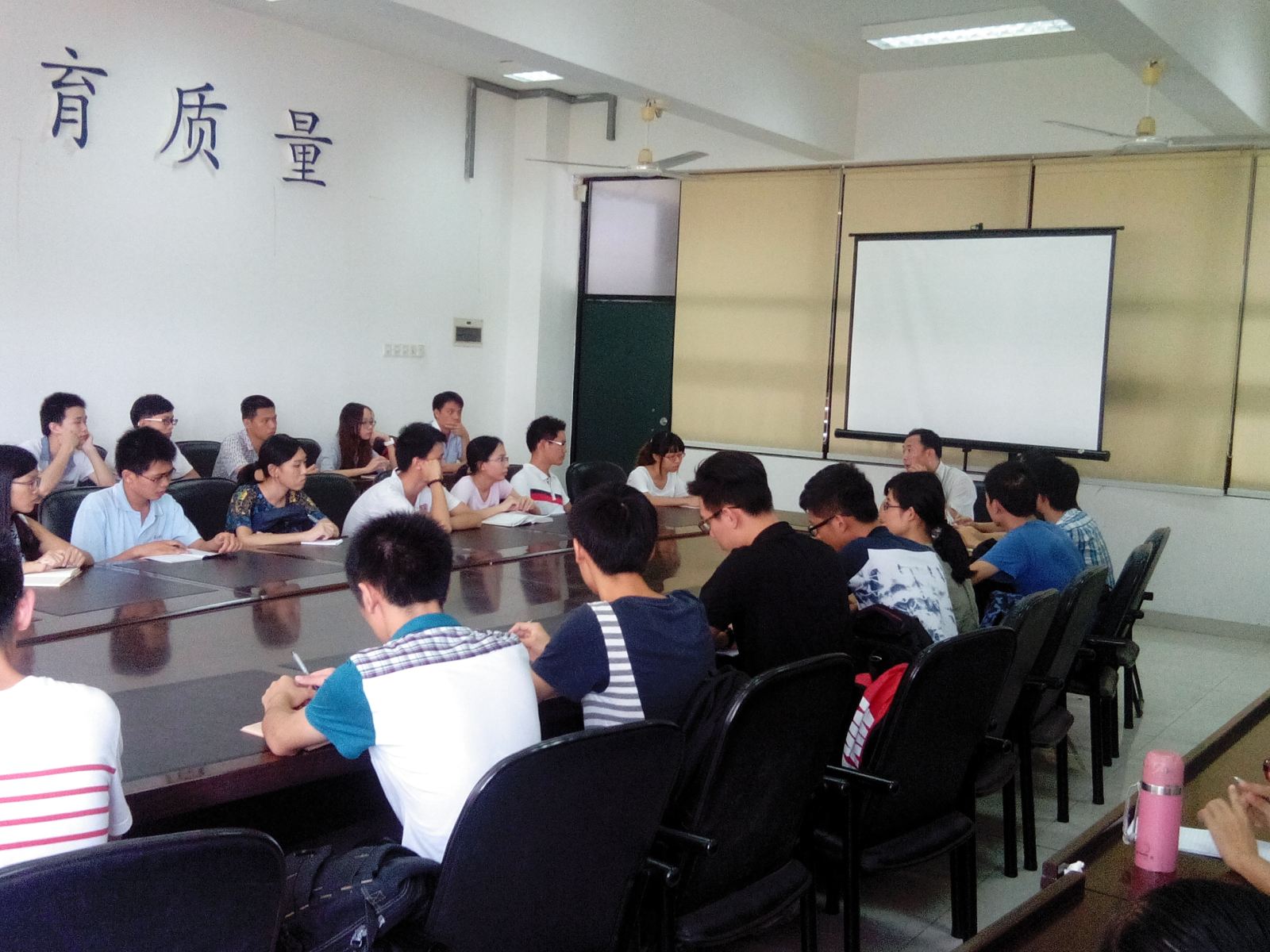 9月17日下午三点,live007即时比分 在工三220会议室召开2015届本科毕业生推免研究生工作会议,余林院长、英健文副书记、11级辅导员魏源、冯树清老师,以及近50名有意向推免的学生参加了本次会议。