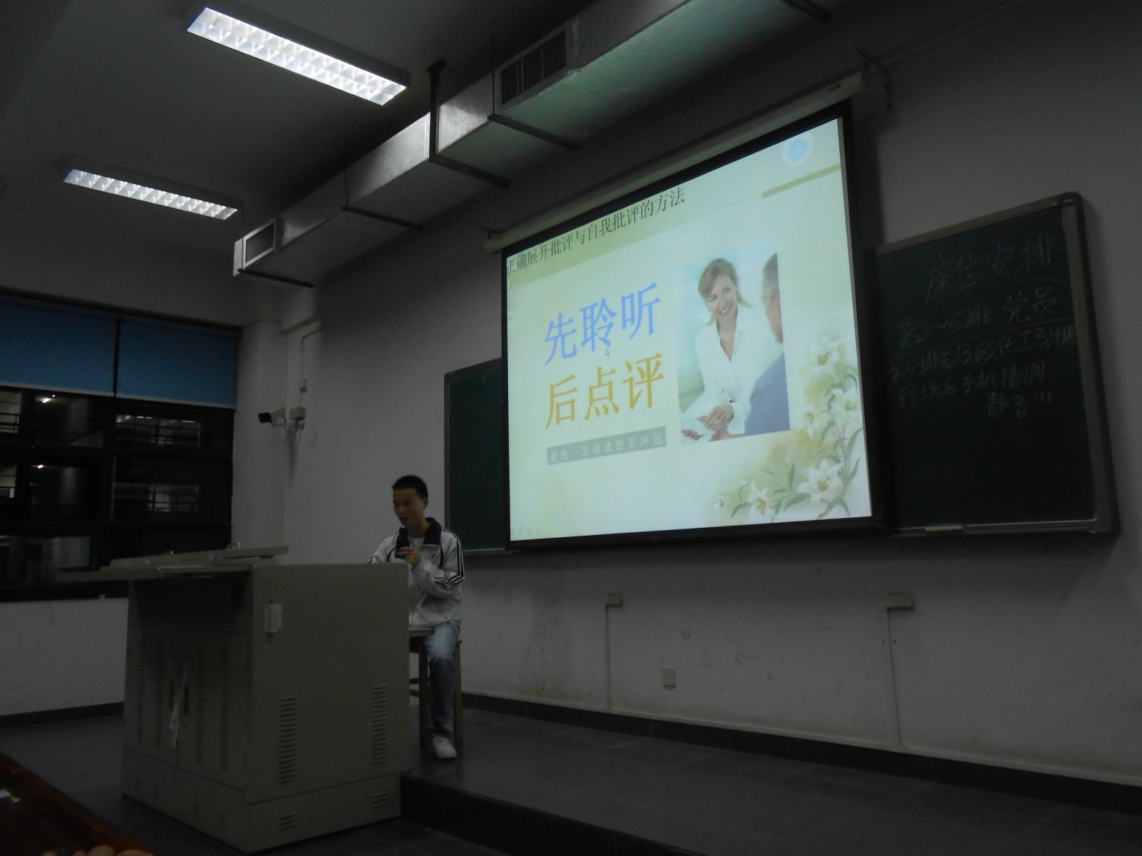 各党支部组织生活和工作流程提出了宝贵的建议。同时,他还建议同学们应做到“吾日三省吾身”,学生干部应带头自我批评,形成有利于开展批评与自我批评的浓厚氛围。罗泳彬同学则围绕主题向大家阐述了开展“批评与自我批评”的意义、态度、方法和应把握的原则,在方法上应该“先表扬后批评、公开表扬私下批评、先调查后批评、先聆听后点评、控时间忌唠叨、只对事不对人、多启发少责备”;在原则上应该把握“目标原则、主动原则、公开原则、适度原则、艺术原则”五大原则,开展批评与自我批评要注意把握时间,选择适当的时机;把握空间,选择适当的场合;把握对象,因人而异;把握情感,以情动人;把握语气,以诚待人。